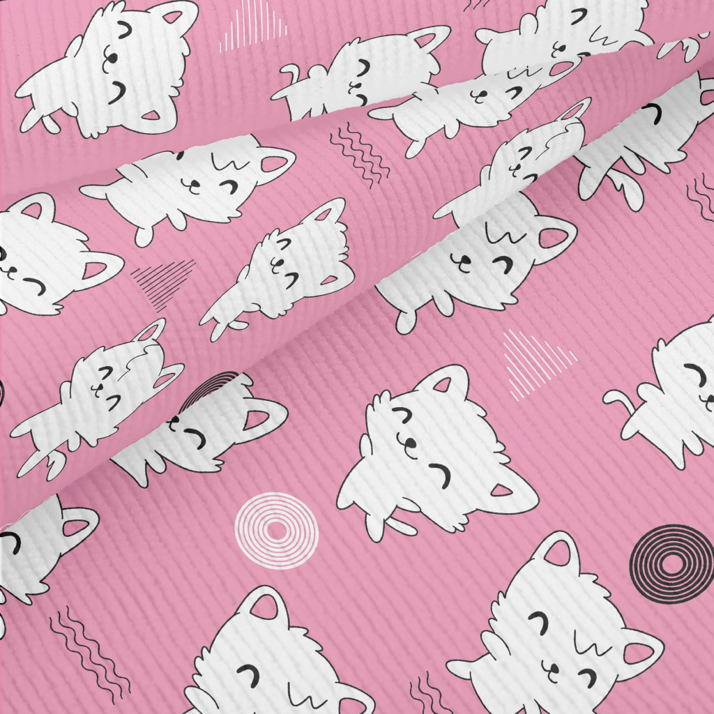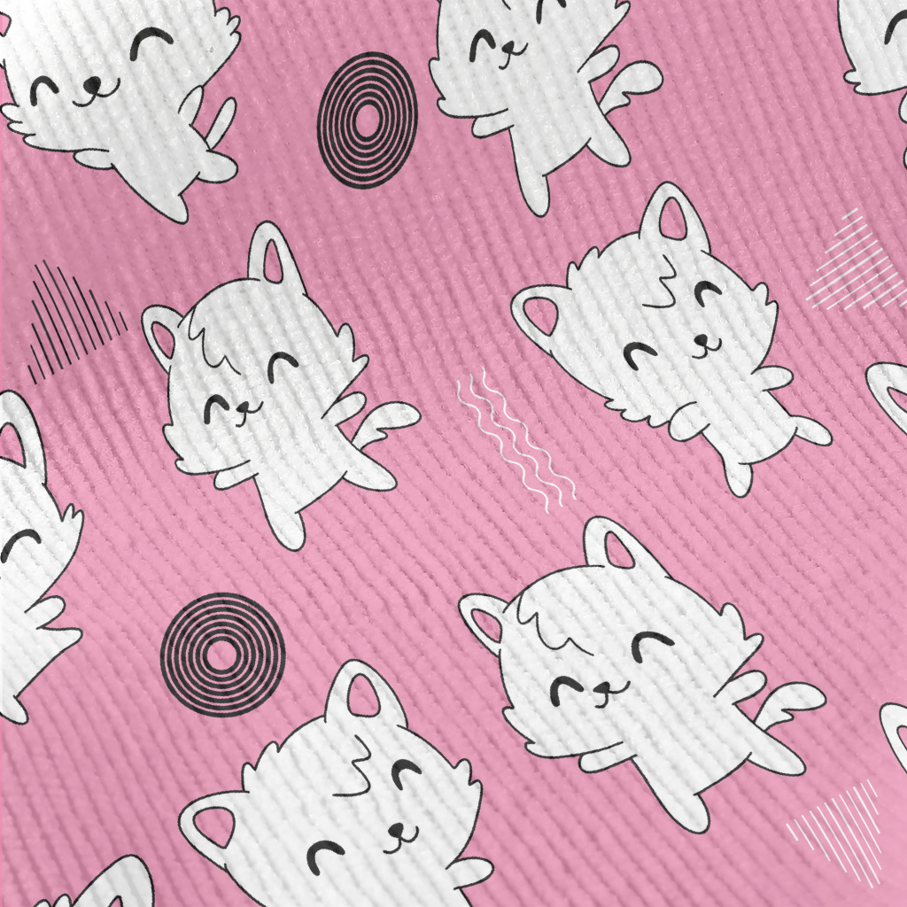 卡通可愛白色貓咪燈芯絨(幅寬150公分)