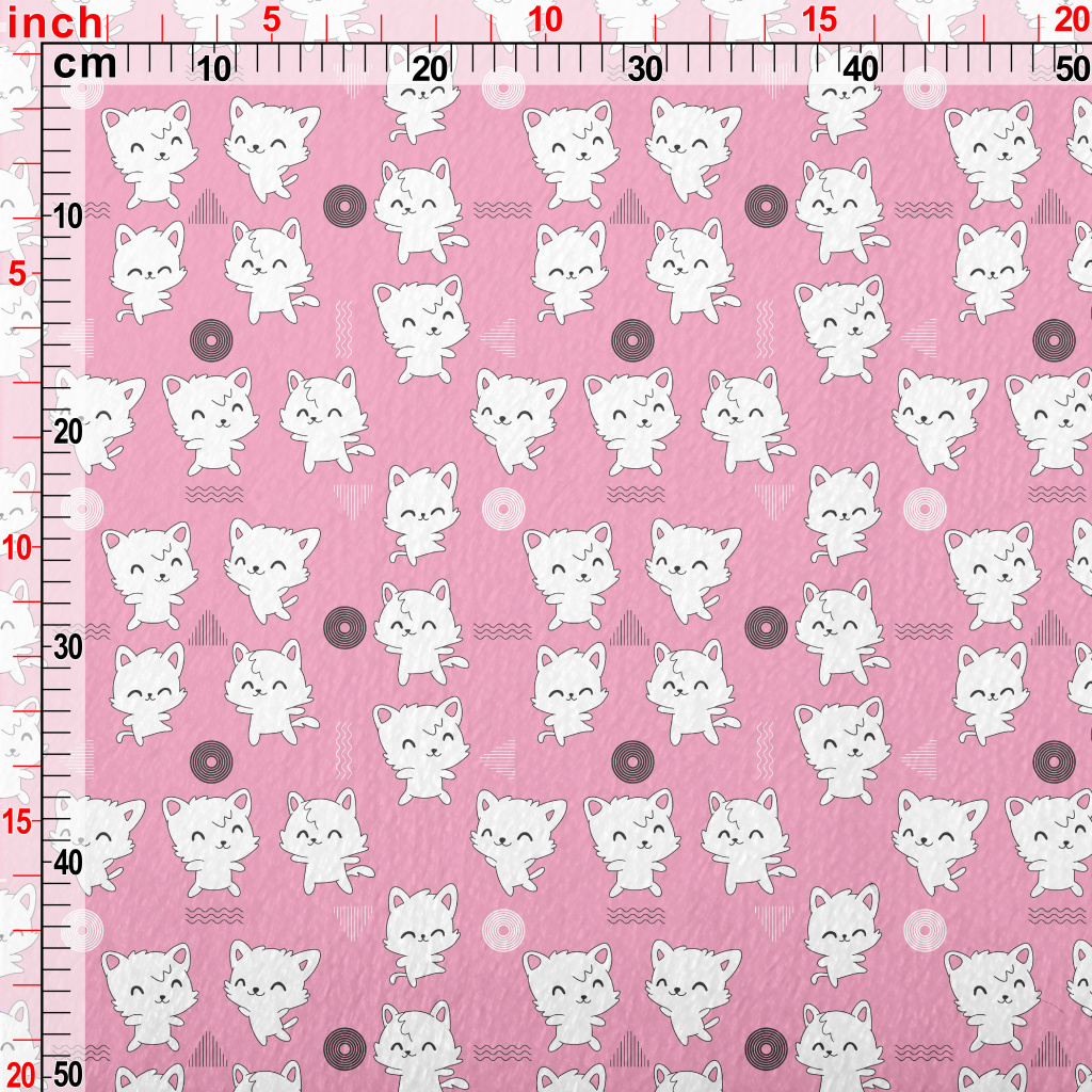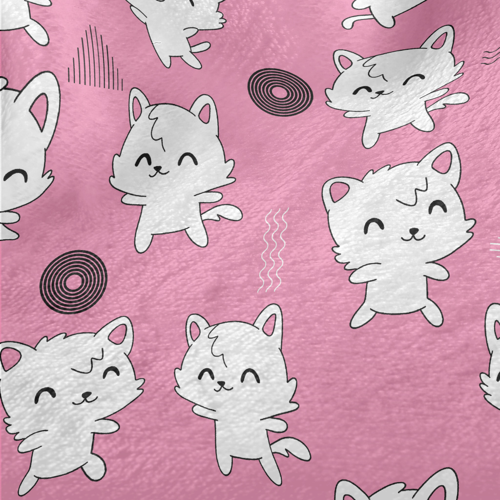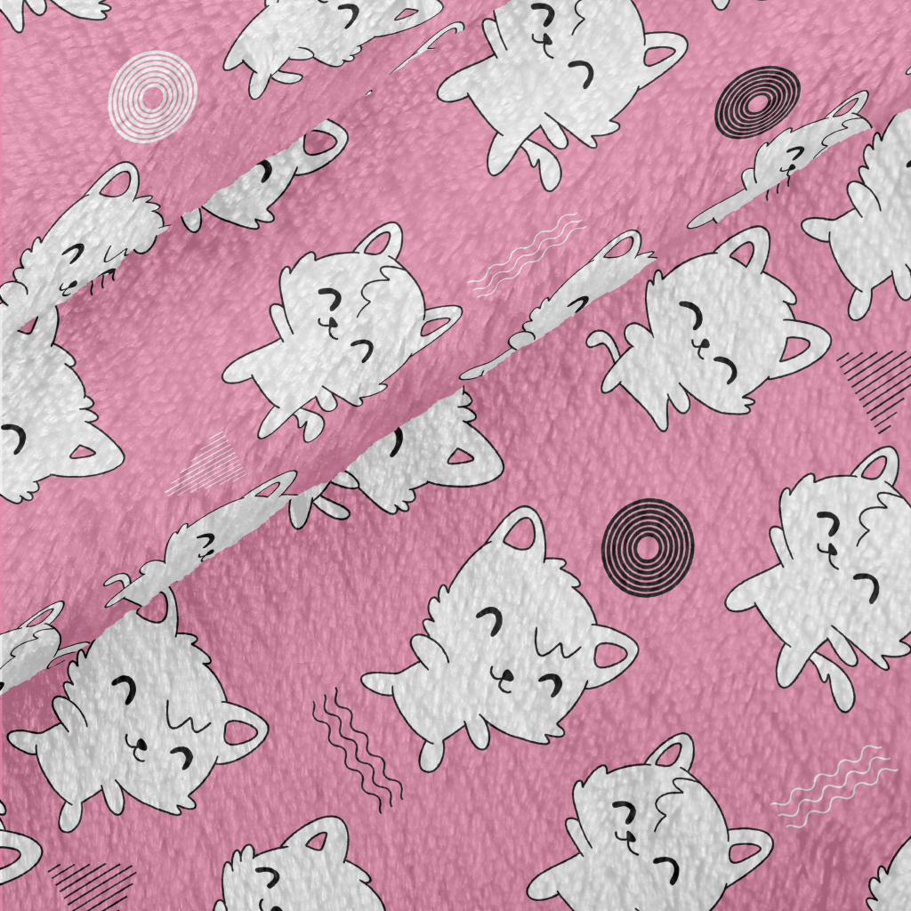 卡通可愛白色貓咪法蘭絨(幅寬150公分)