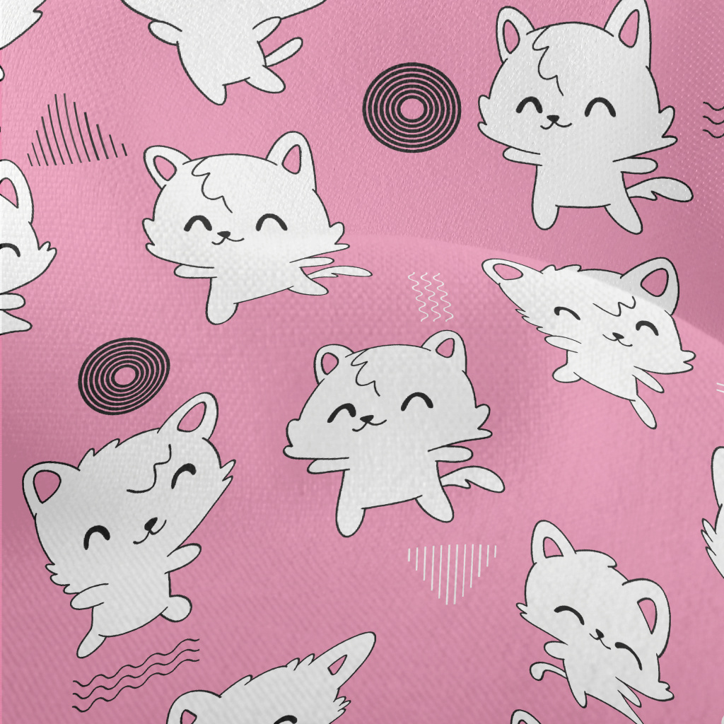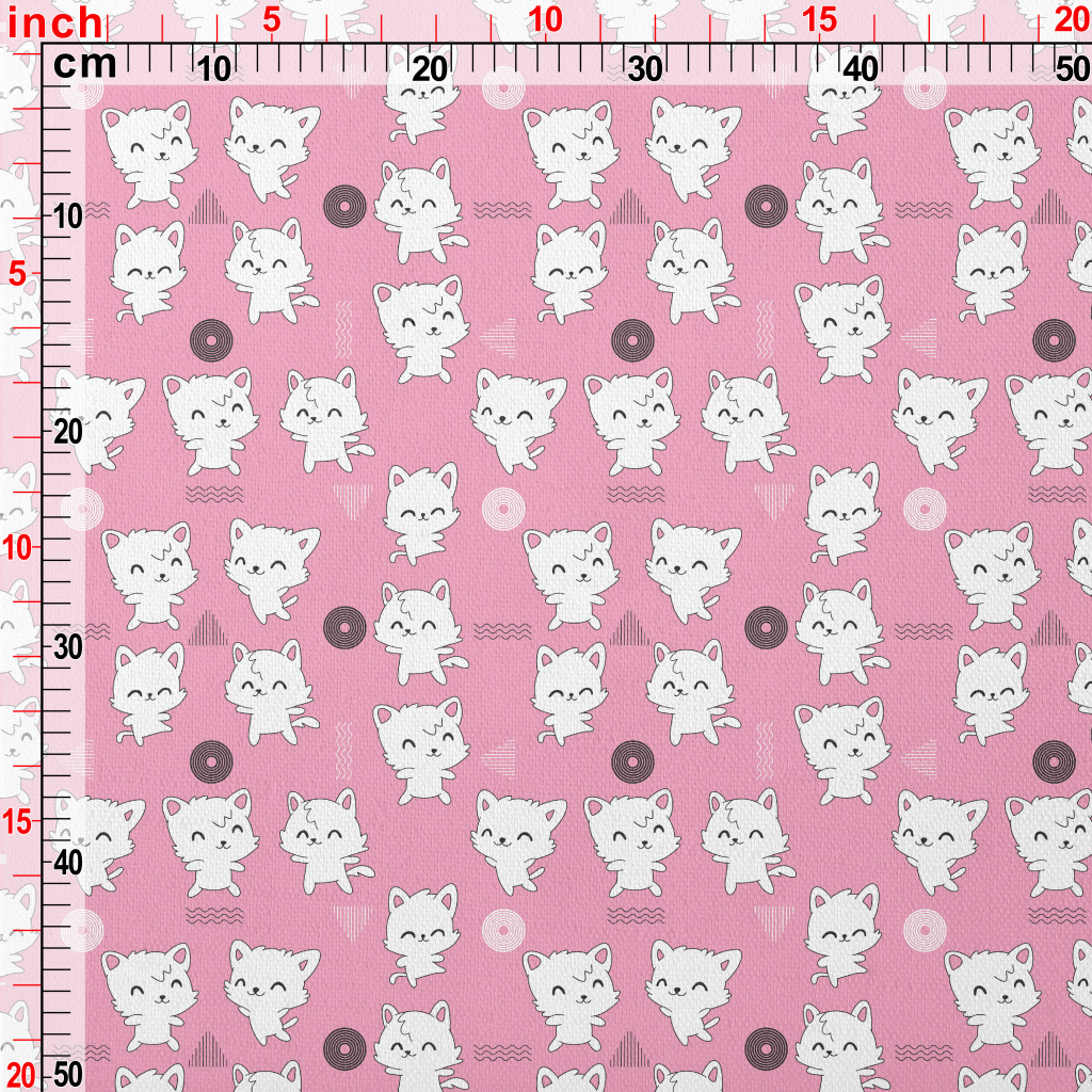 卡通可愛白色貓咪竹節麻(幅寬150公分)