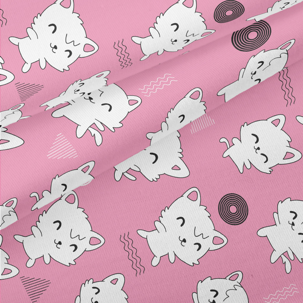 卡通可愛白色貓咪仿棉布(幅寬150公分)