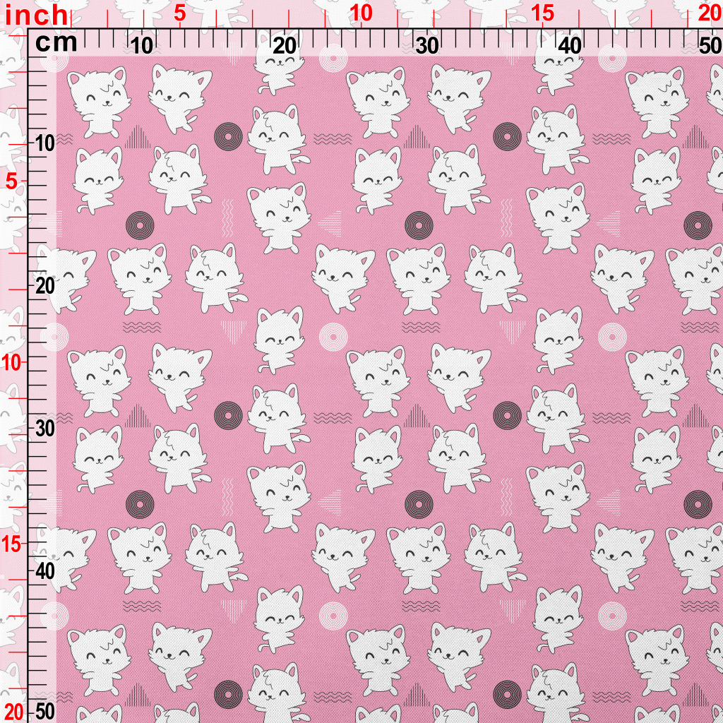 卡通可愛白色貓咪春亞紡(幅寬160公分)
