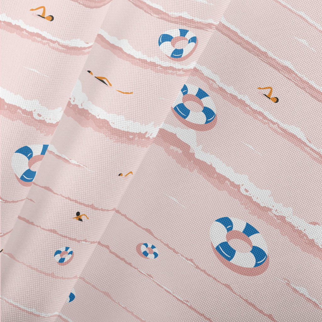 粉色夏日海浪與泳圈春亞紡(幅寬160公分)