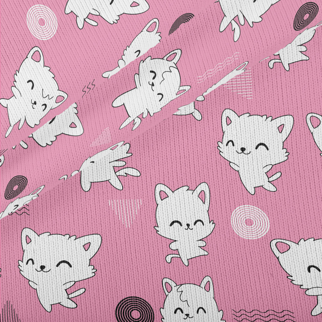 卡通可愛白色貓咪仿毛衣布(幅寬150公分)