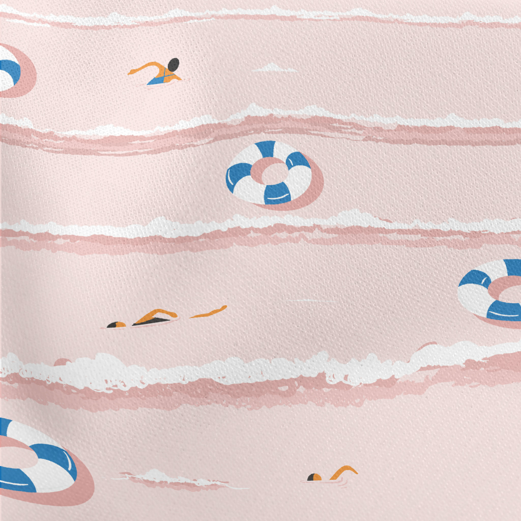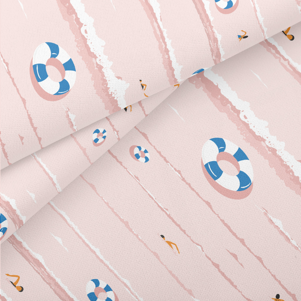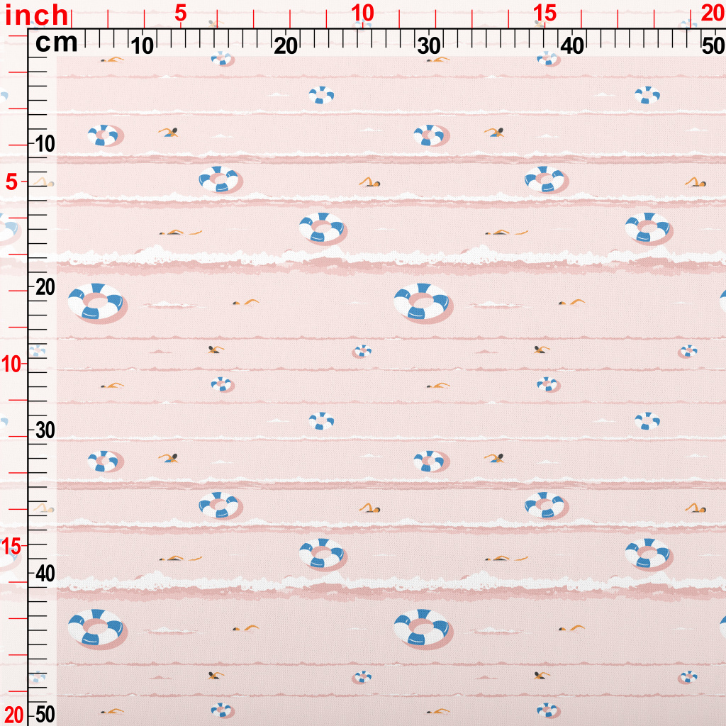 粉色夏日海浪與泳圈薄棉布(幅寬150公分)