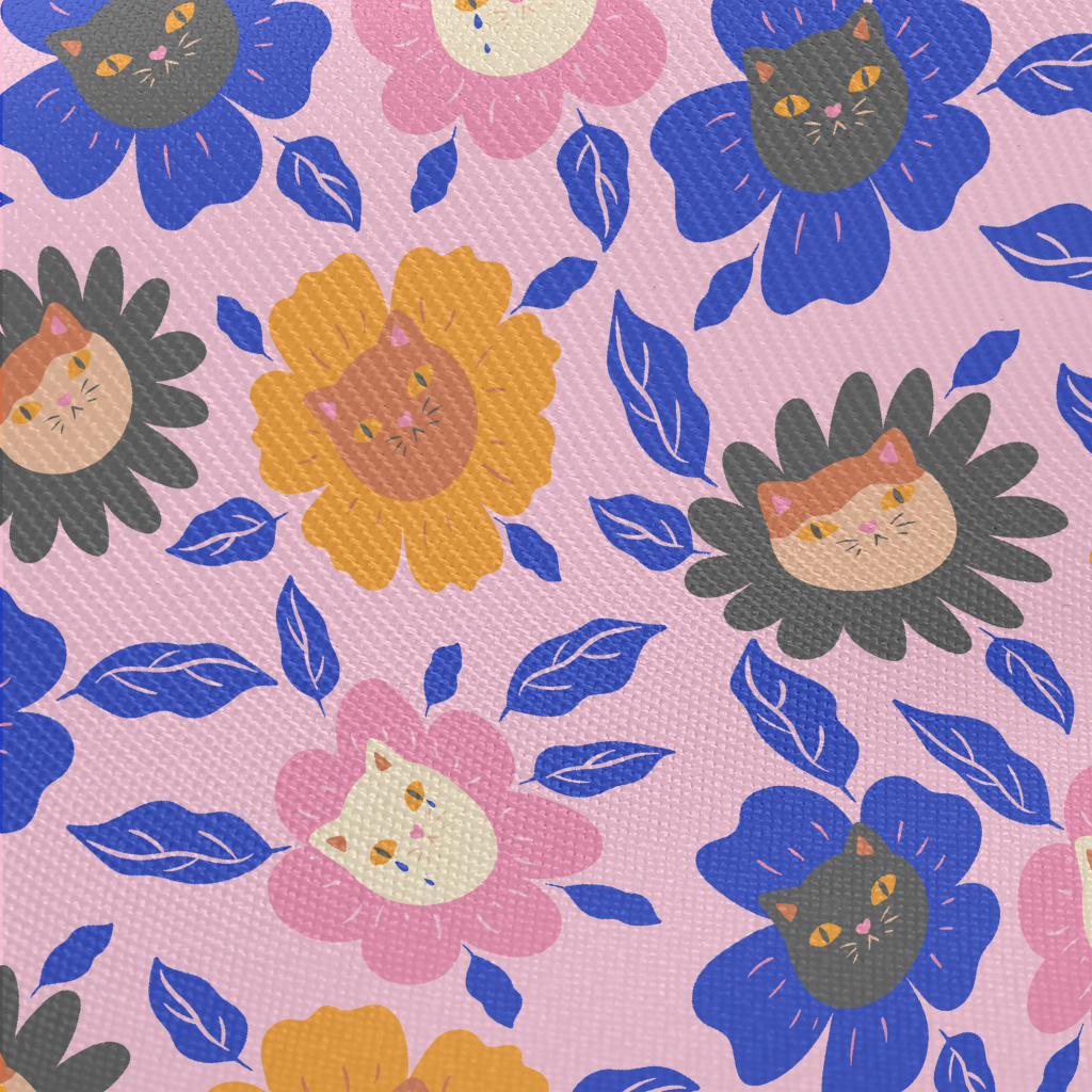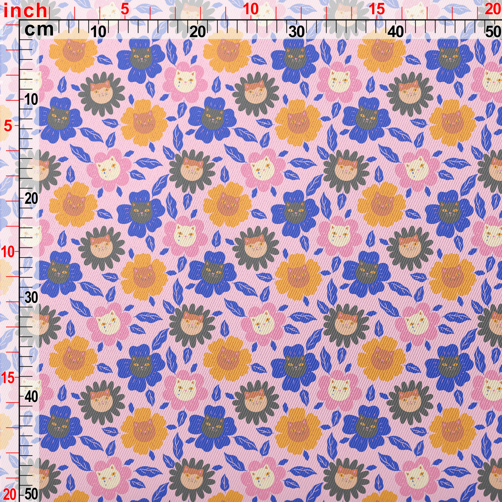 變成花朵的貓咪厚棉布(幅寬150公分)
