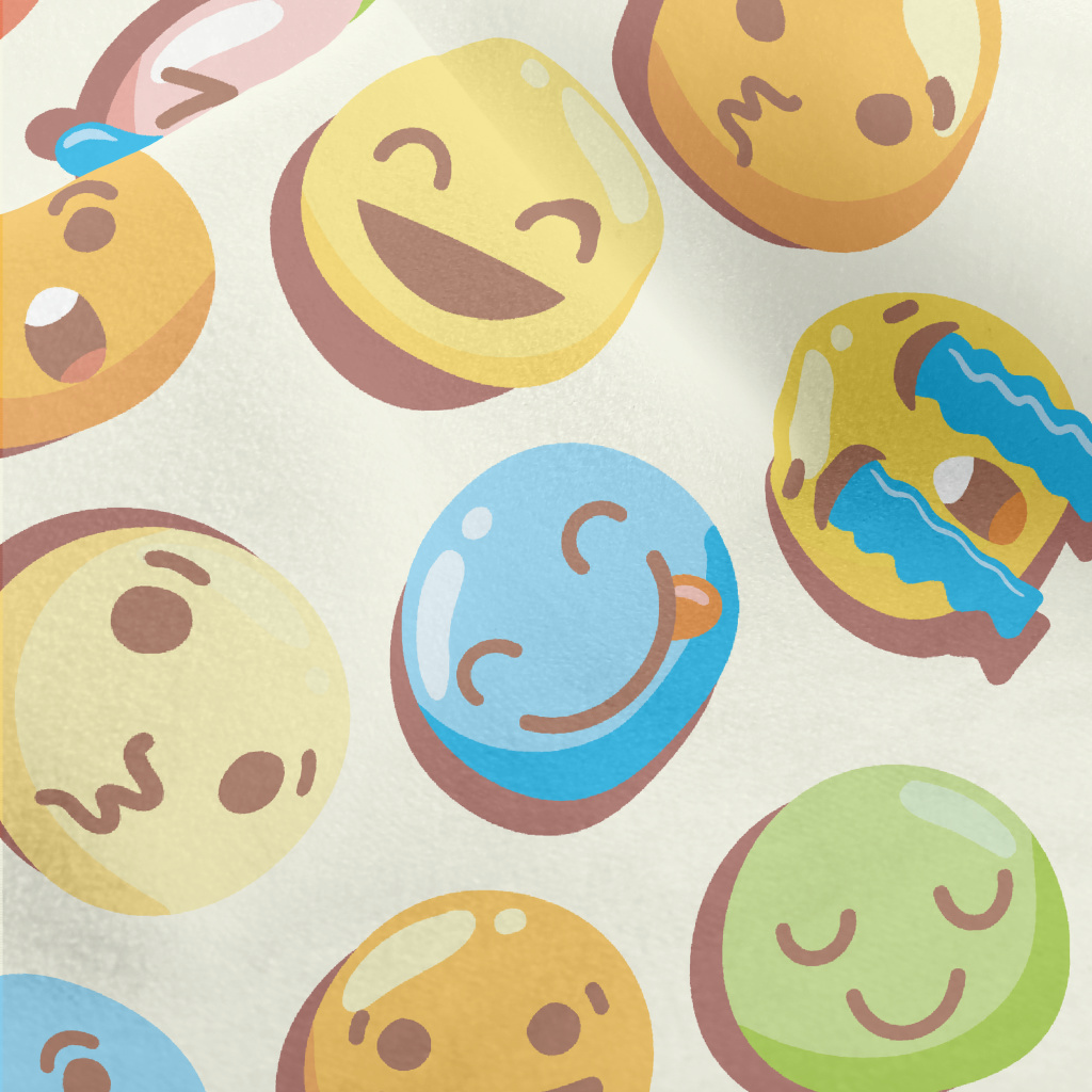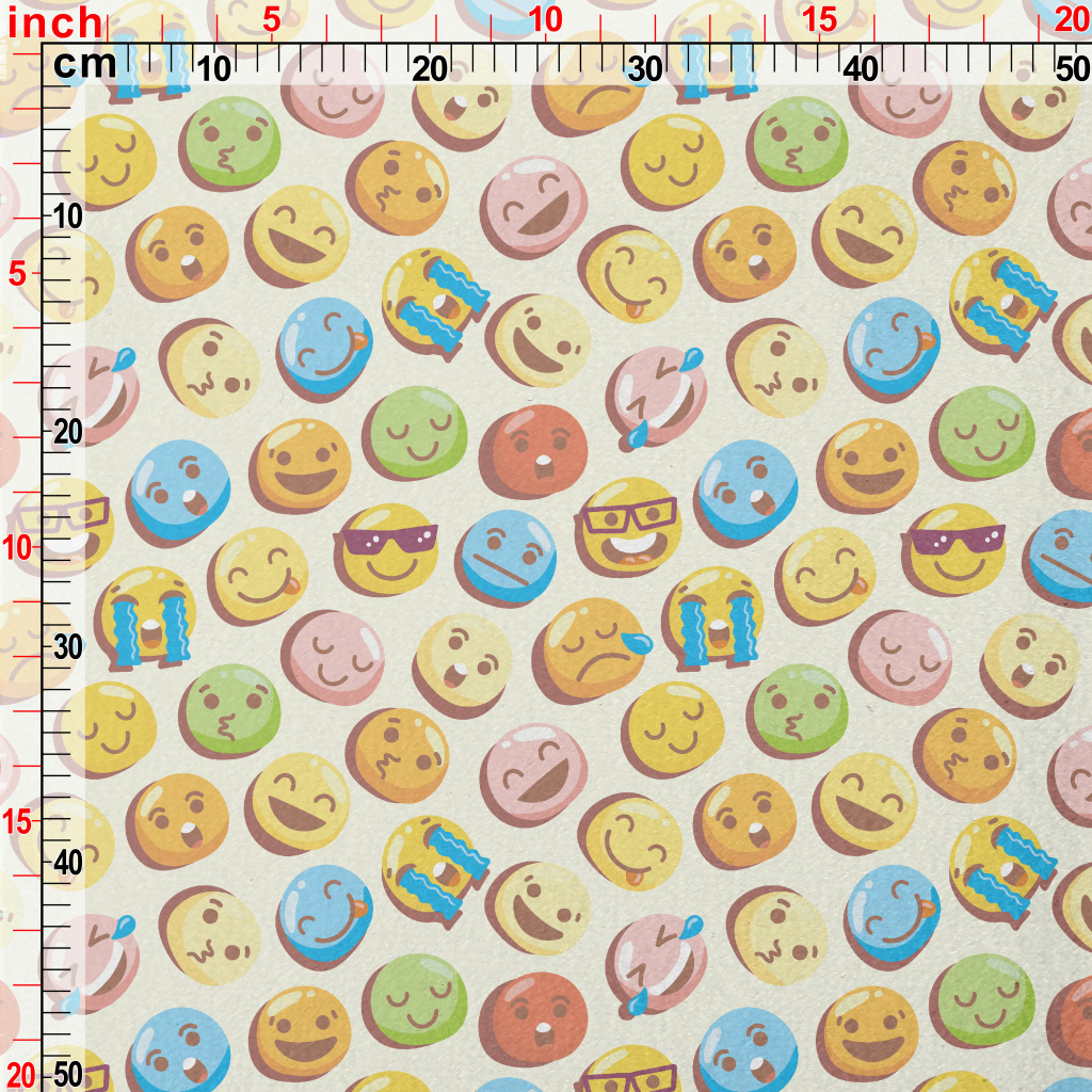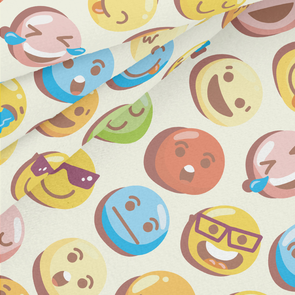 多彩各種表情符號圖案水晶絨(幅寬160公分)