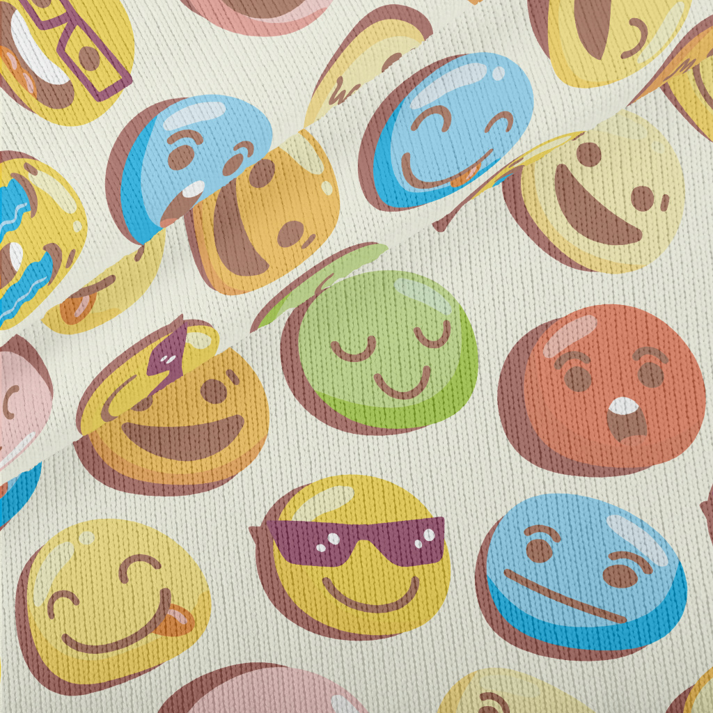 多彩各種表情符號圖案仿毛衣布(幅寬150公分)