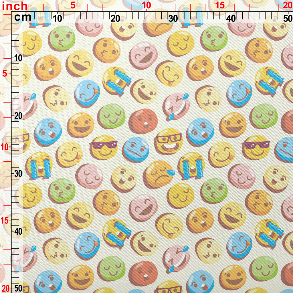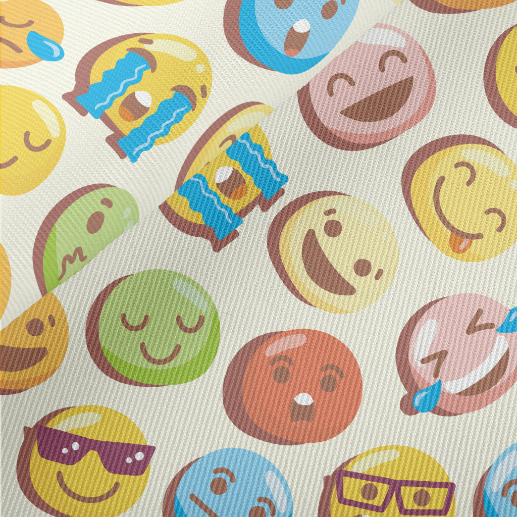 多彩各種表情符號圖案厚棉布(幅寬150公分)