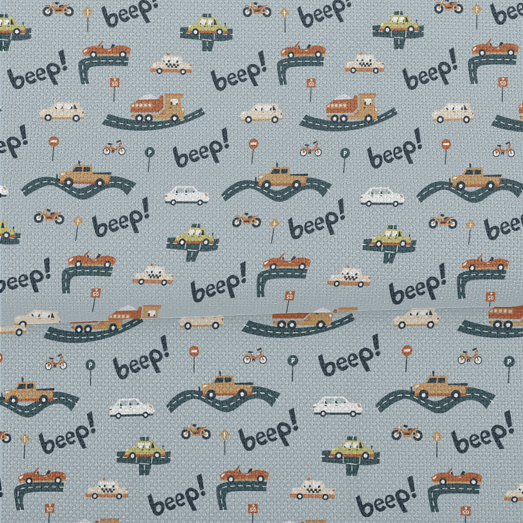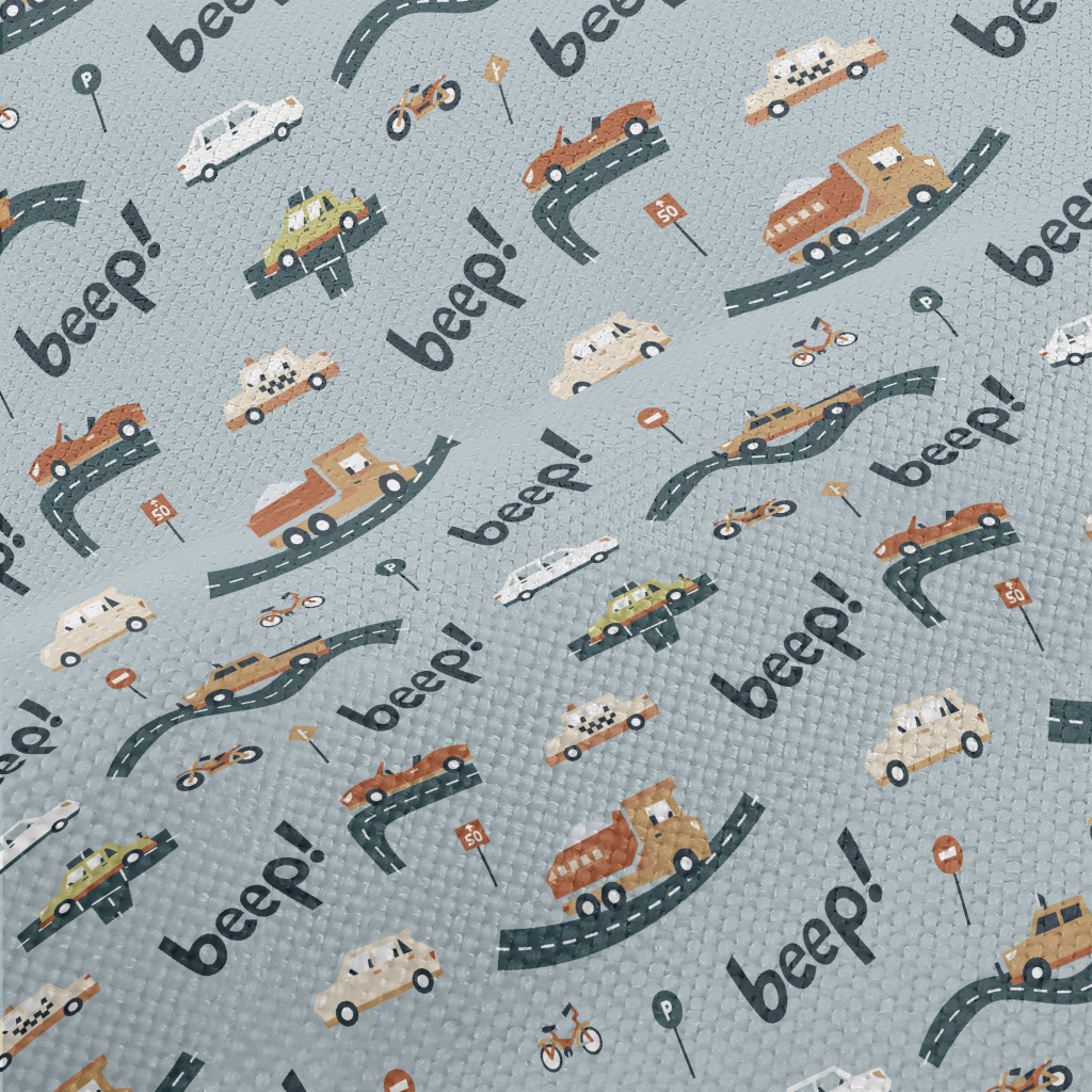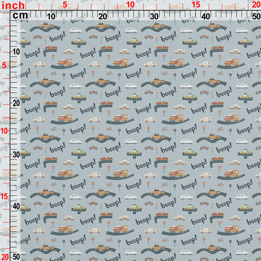 卡通各種汽車和卡車麻布(幅寬150公分)