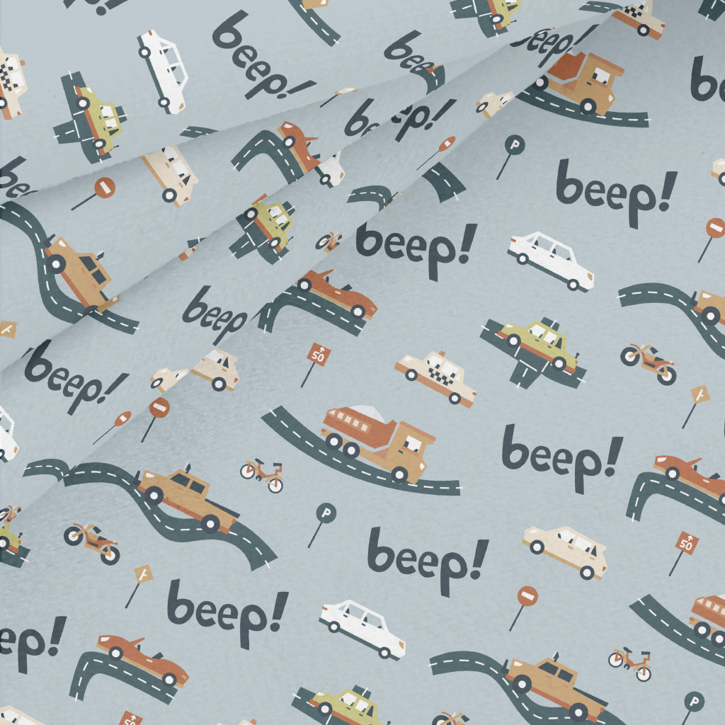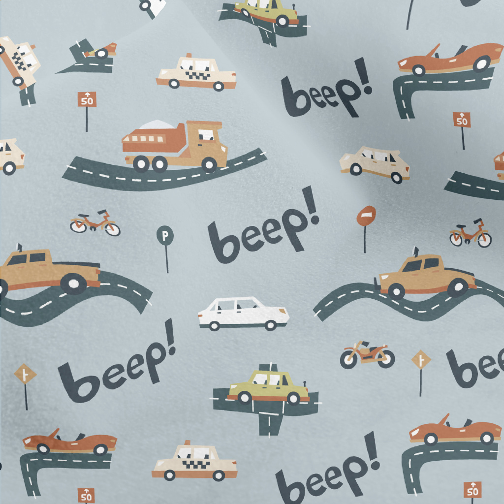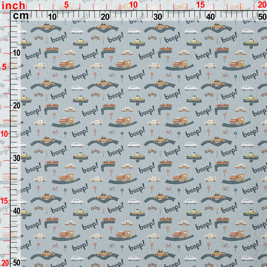 卡通各種汽車和卡車水晶絨(幅寬160公分)