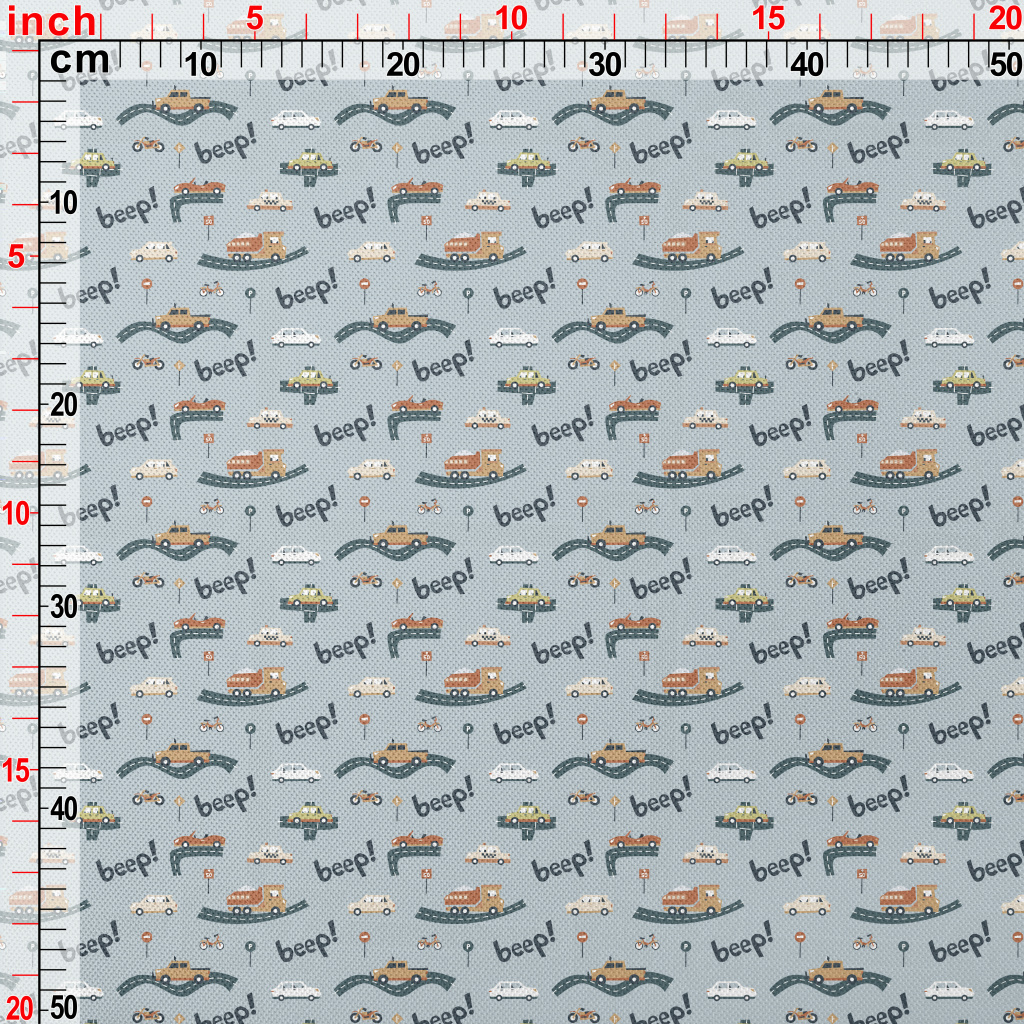 卡通各種汽車和卡車高爾布(幅寬180公分)