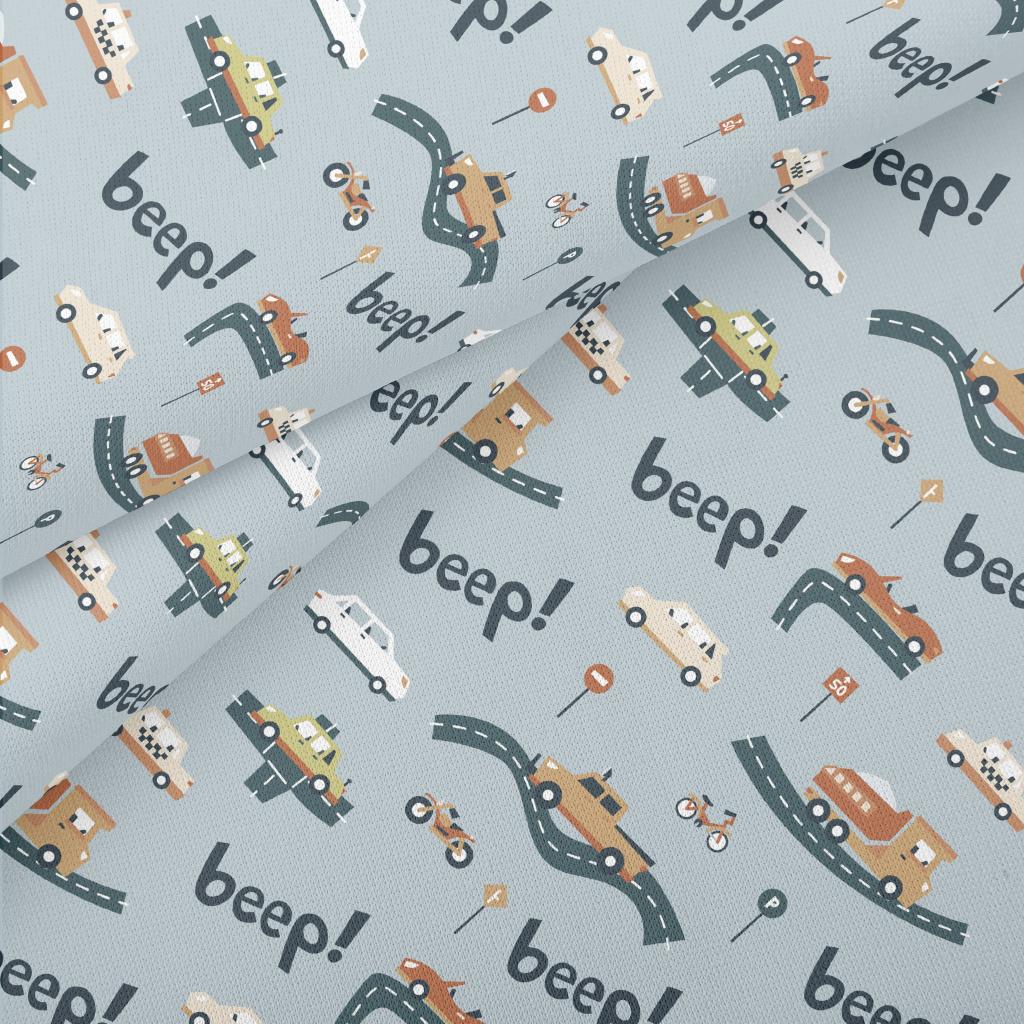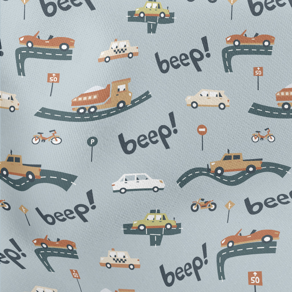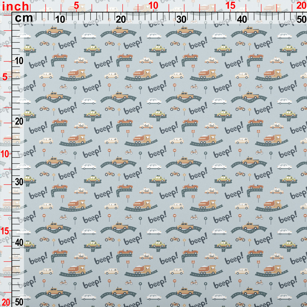 卡通各種汽車和卡車薄棉布(幅寬150公分)