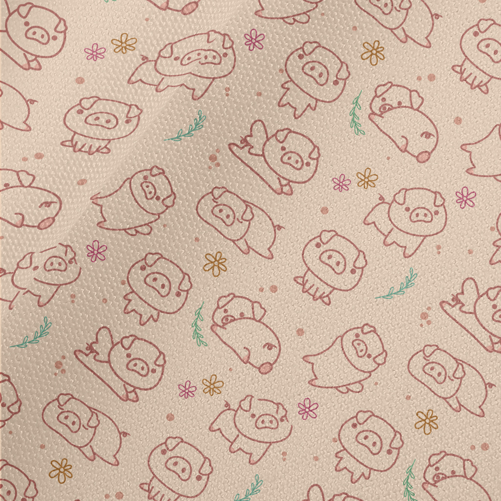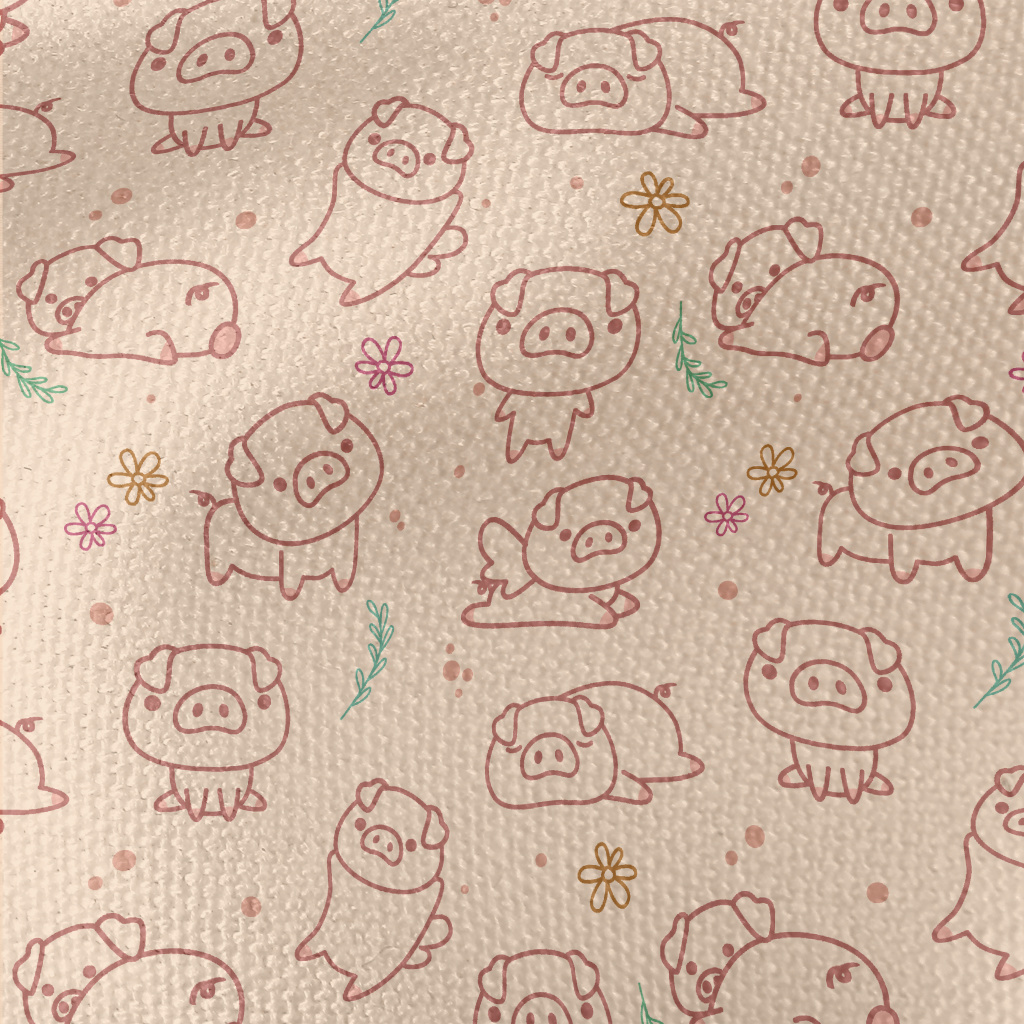 各種動作調皮小豬帆布(幅寬150公分)
