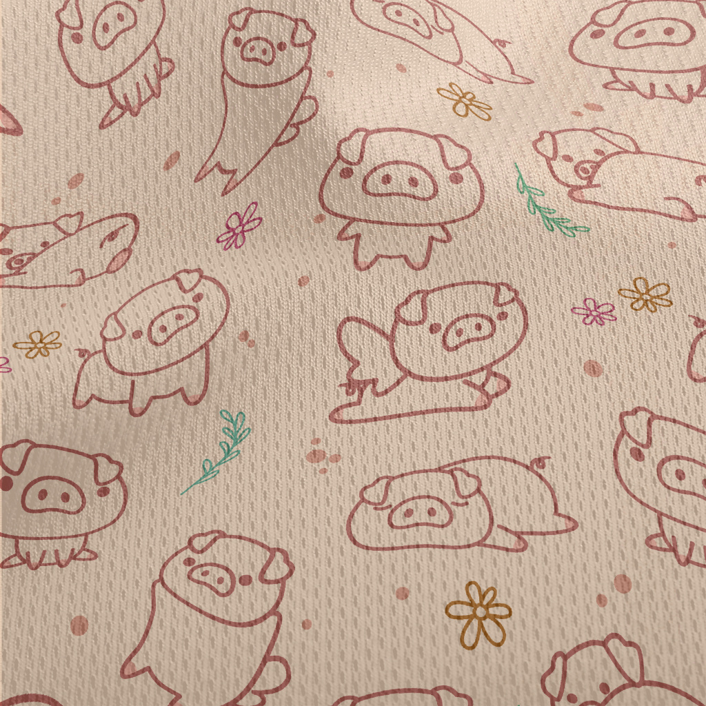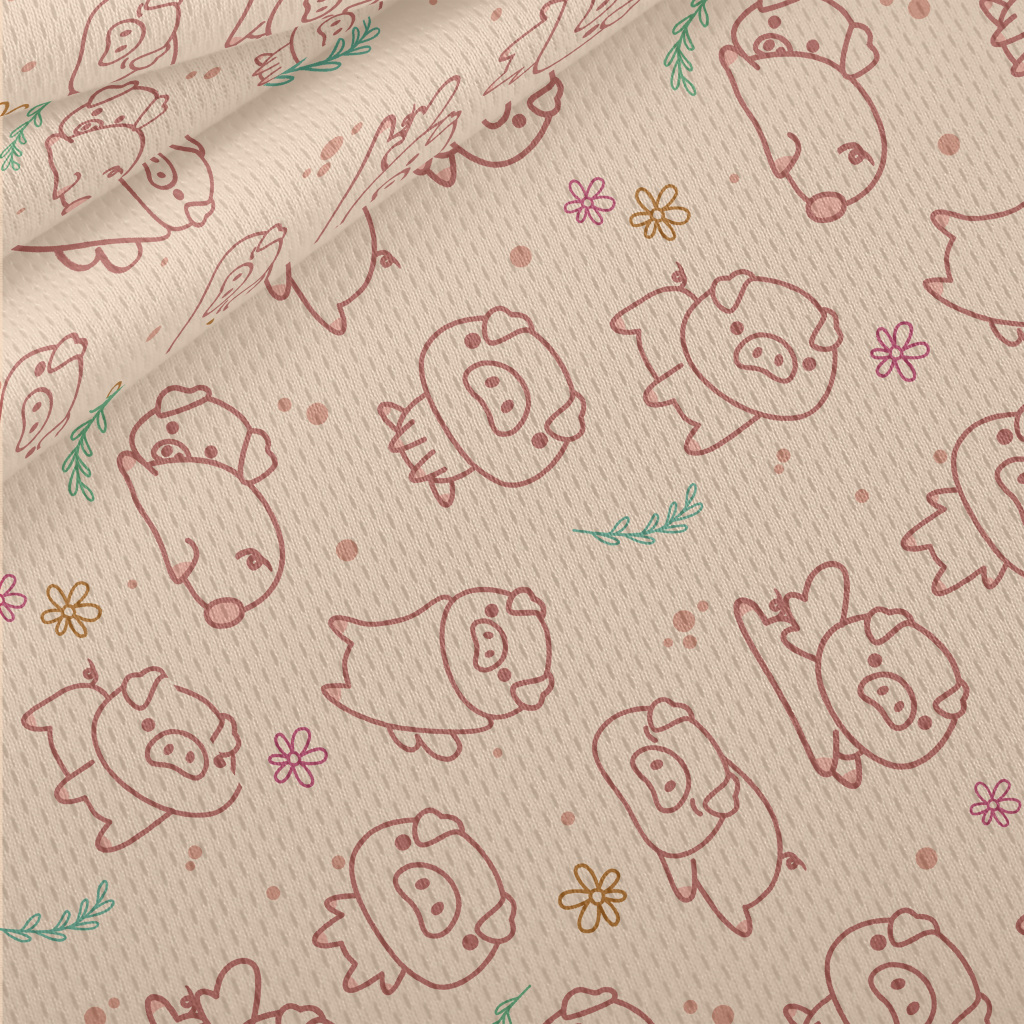 各種動作調皮小豬鳥眼布(幅寬160公分)