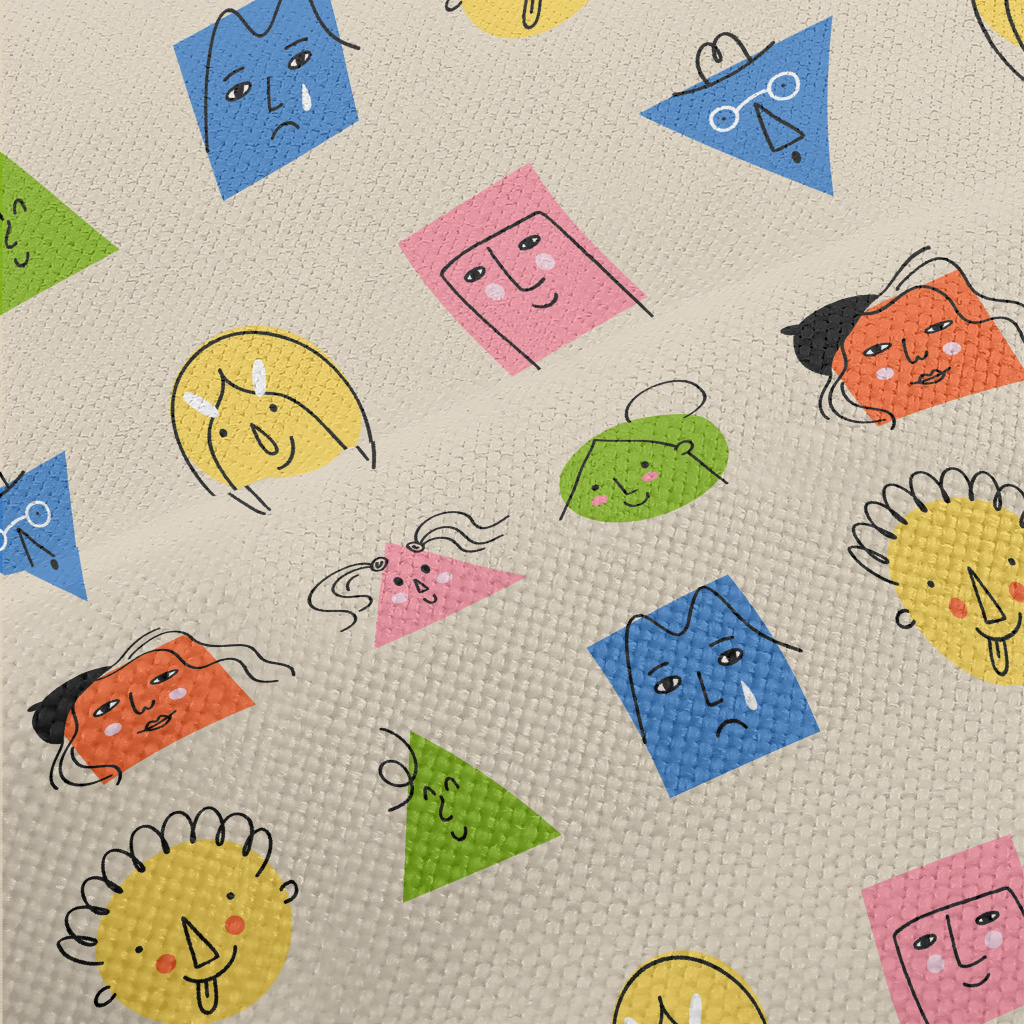 擬人頭像幾何形狀麻布(幅寬150公分)