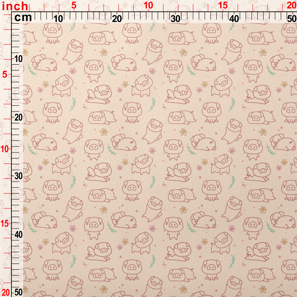 各種動作調皮小豬斜紋布(幅寬150公分)