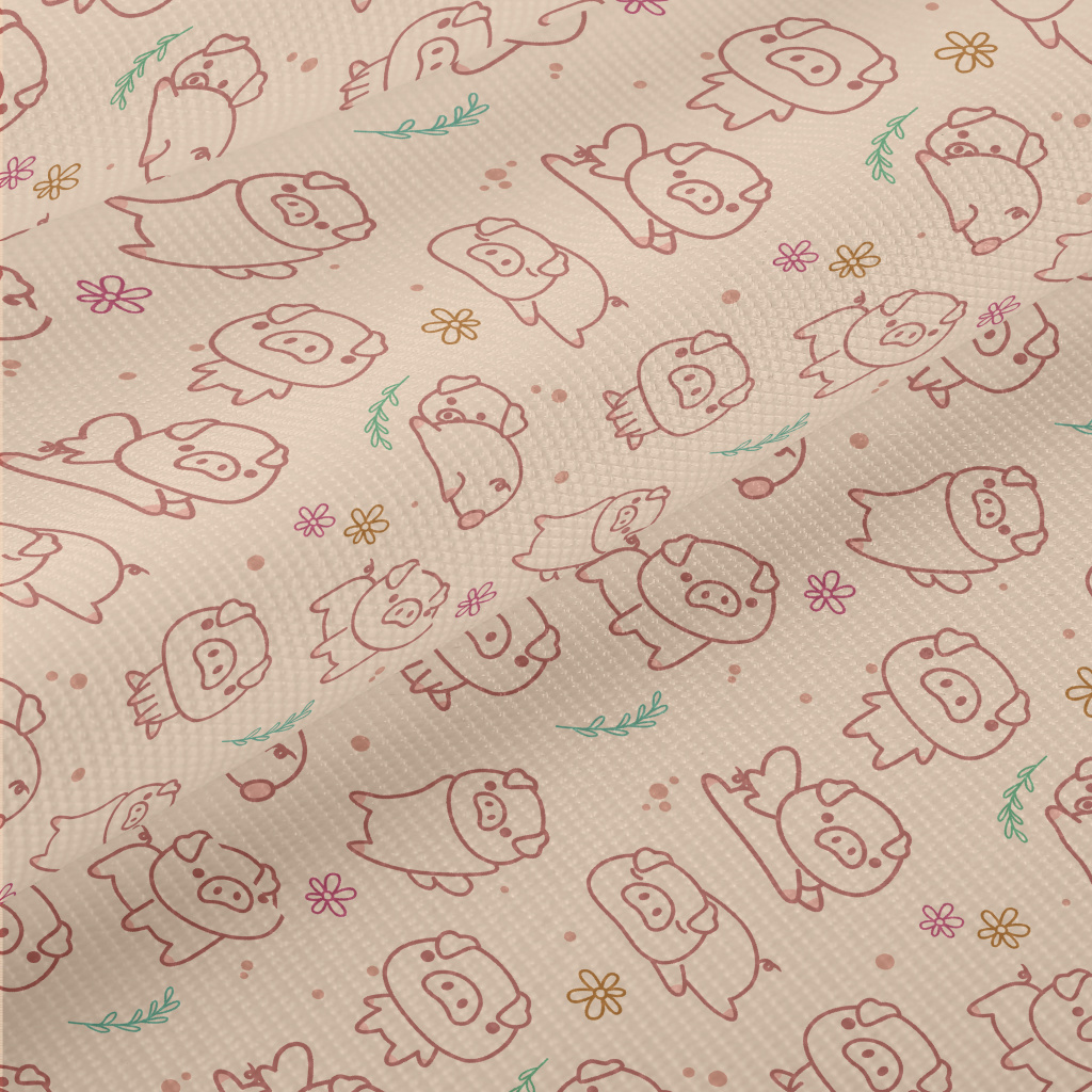 各種動作調皮小豬雙斜布(幅寬150公分)