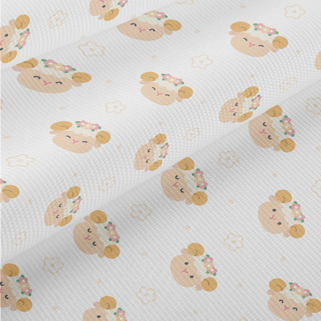 可愛溫和戴花圈綿羊雙斜布(幅寬150公分)