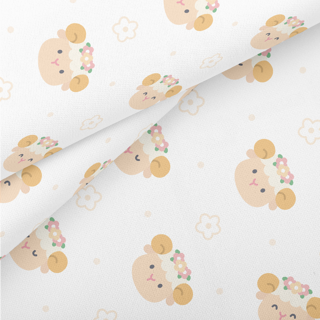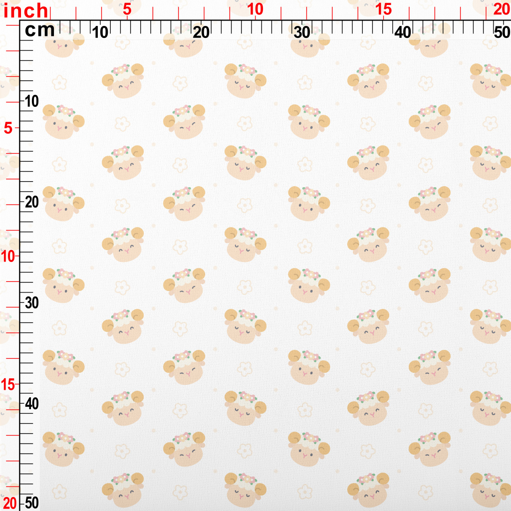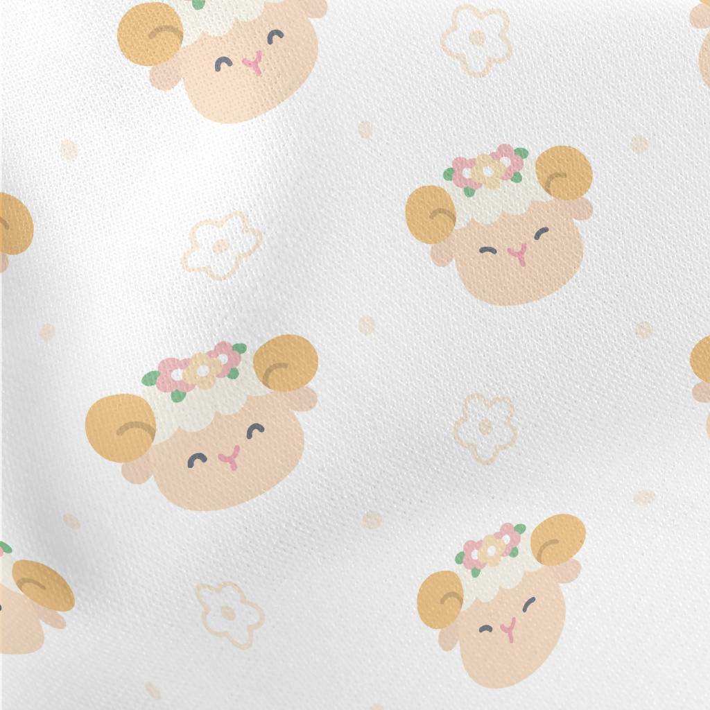 可愛溫和戴花圈綿羊羅馬布(幅寬160公分)