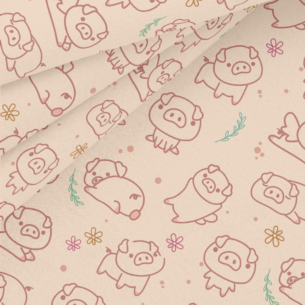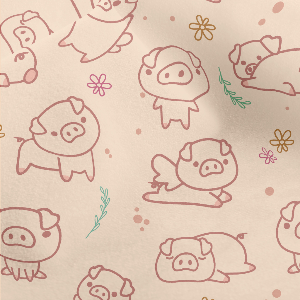 各種動作調皮小豬水晶絨(幅寬160公分)