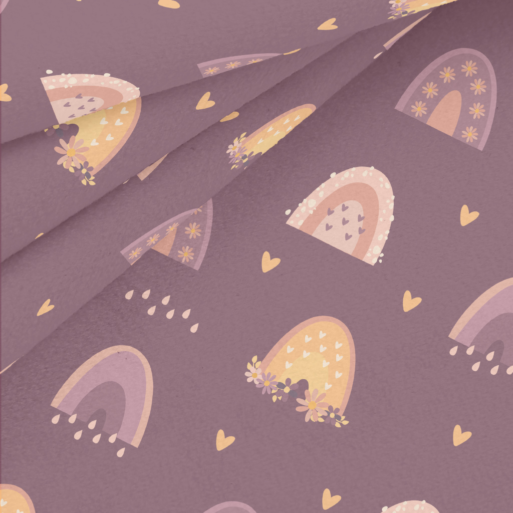 精美裝飾彩虹和愛心水晶絨(幅寬160公分)