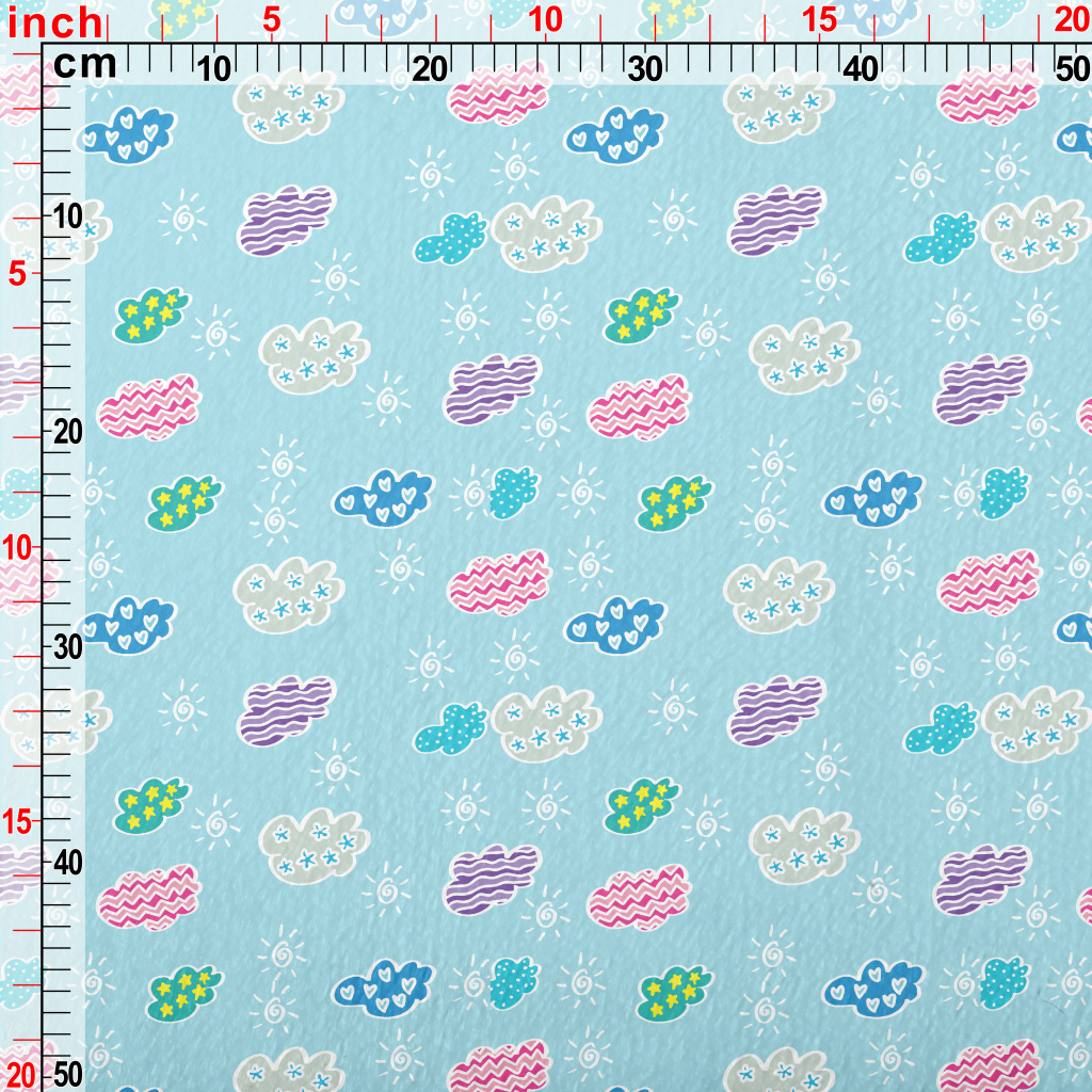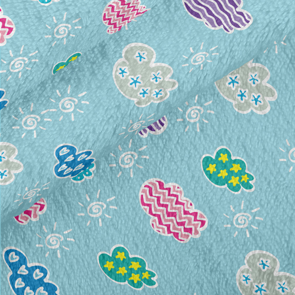 兒童塗鴉彩色雲朵法蘭絨(幅寬150公分)