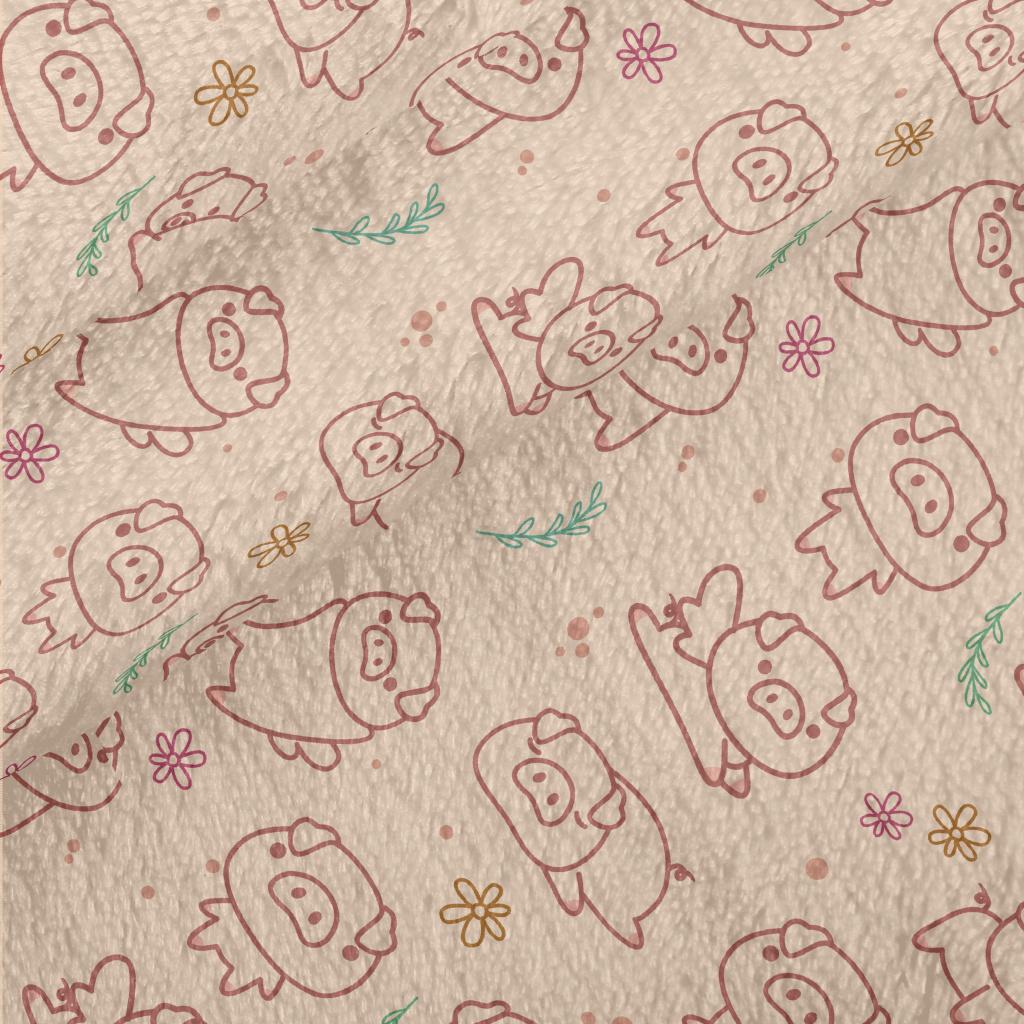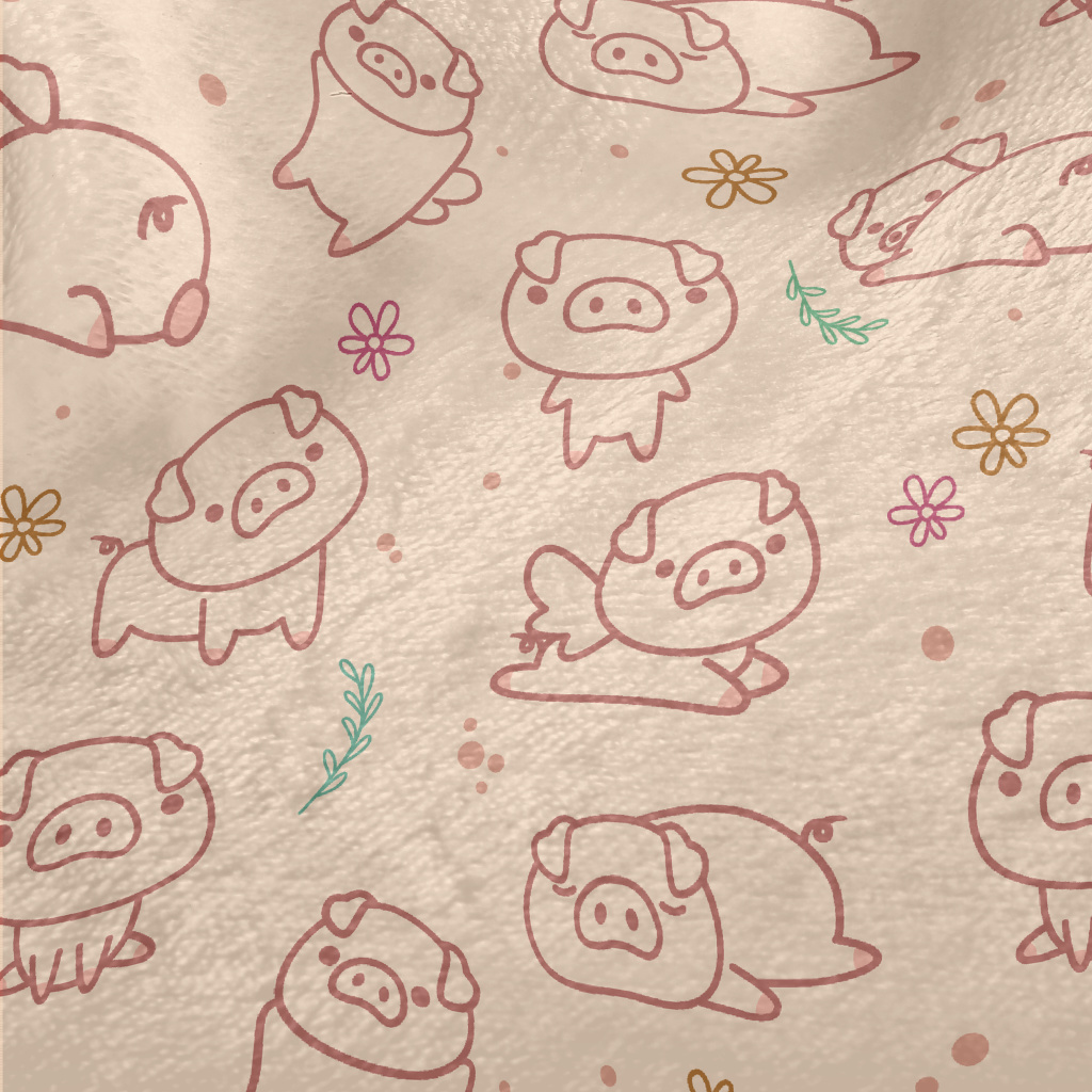 各種動作調皮小豬法蘭絨(幅寬150公分)