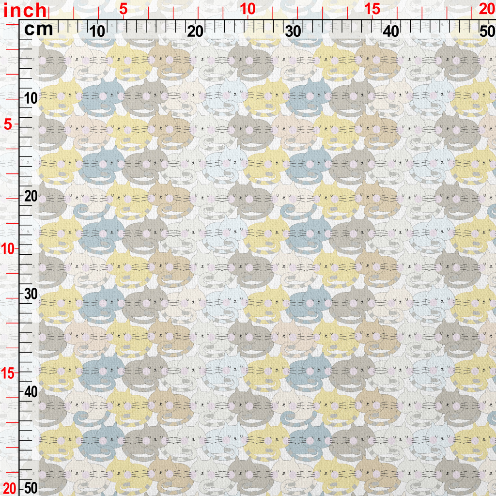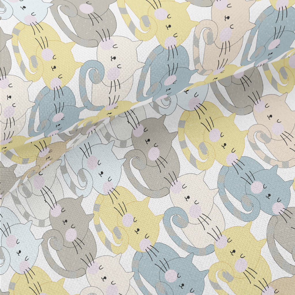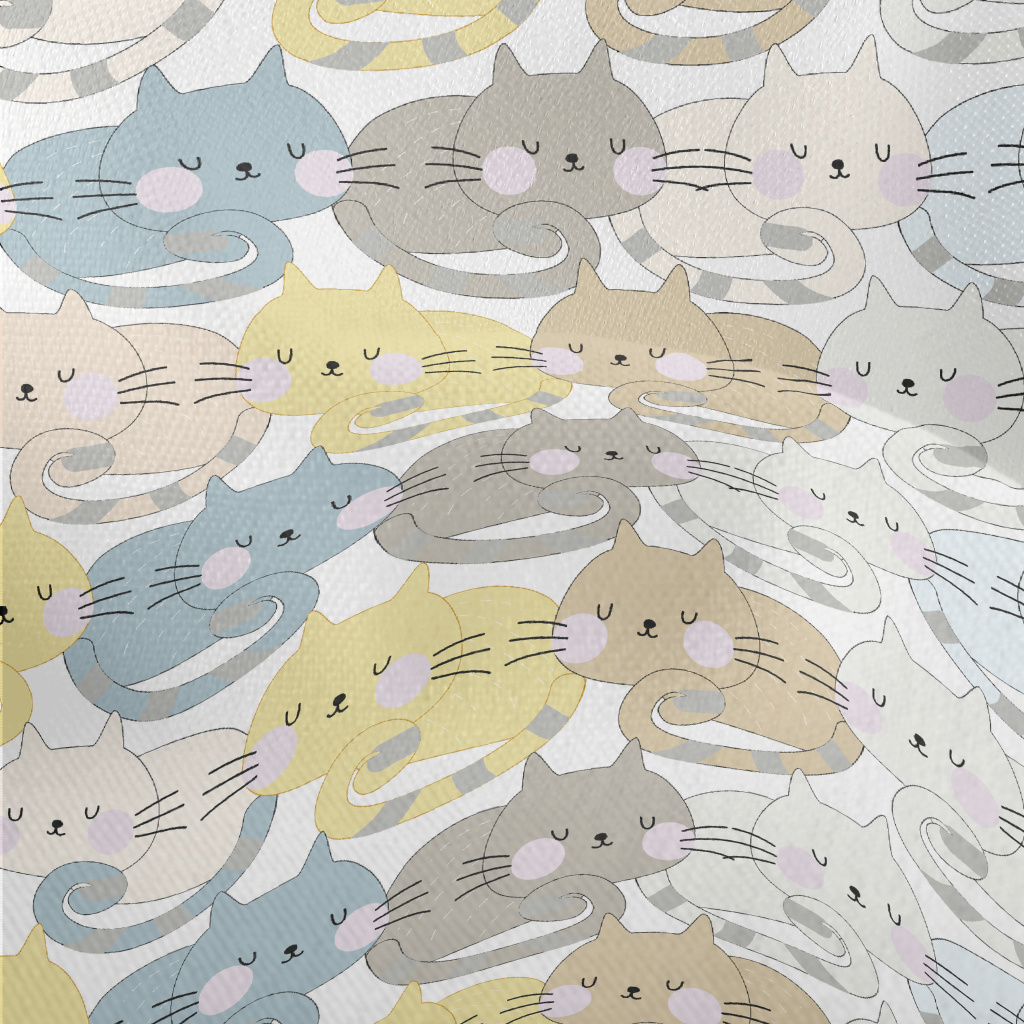 塗鴉彩色休息貓咪竹節麻(幅寬150公分)