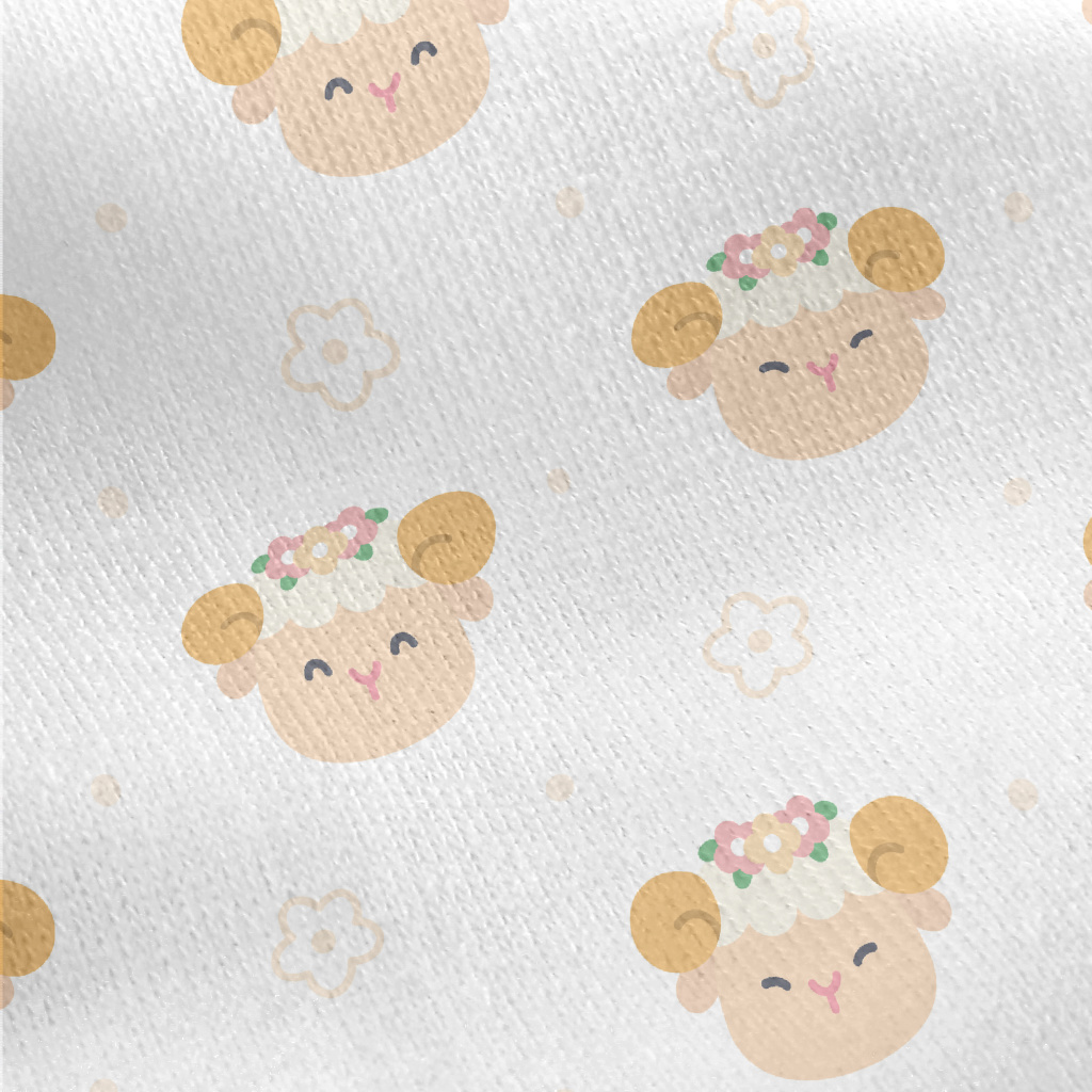 可愛溫和戴花圈綿羊刷毛布(幅寬150公分)