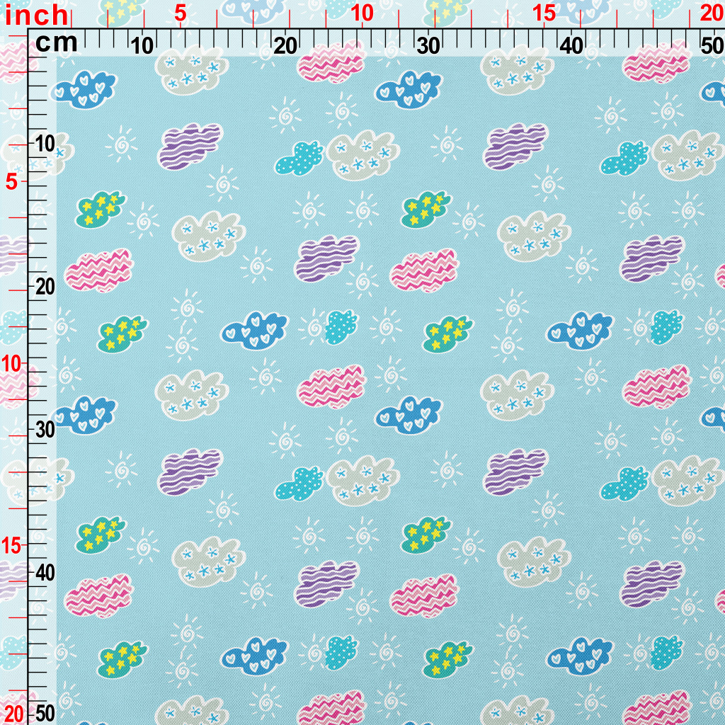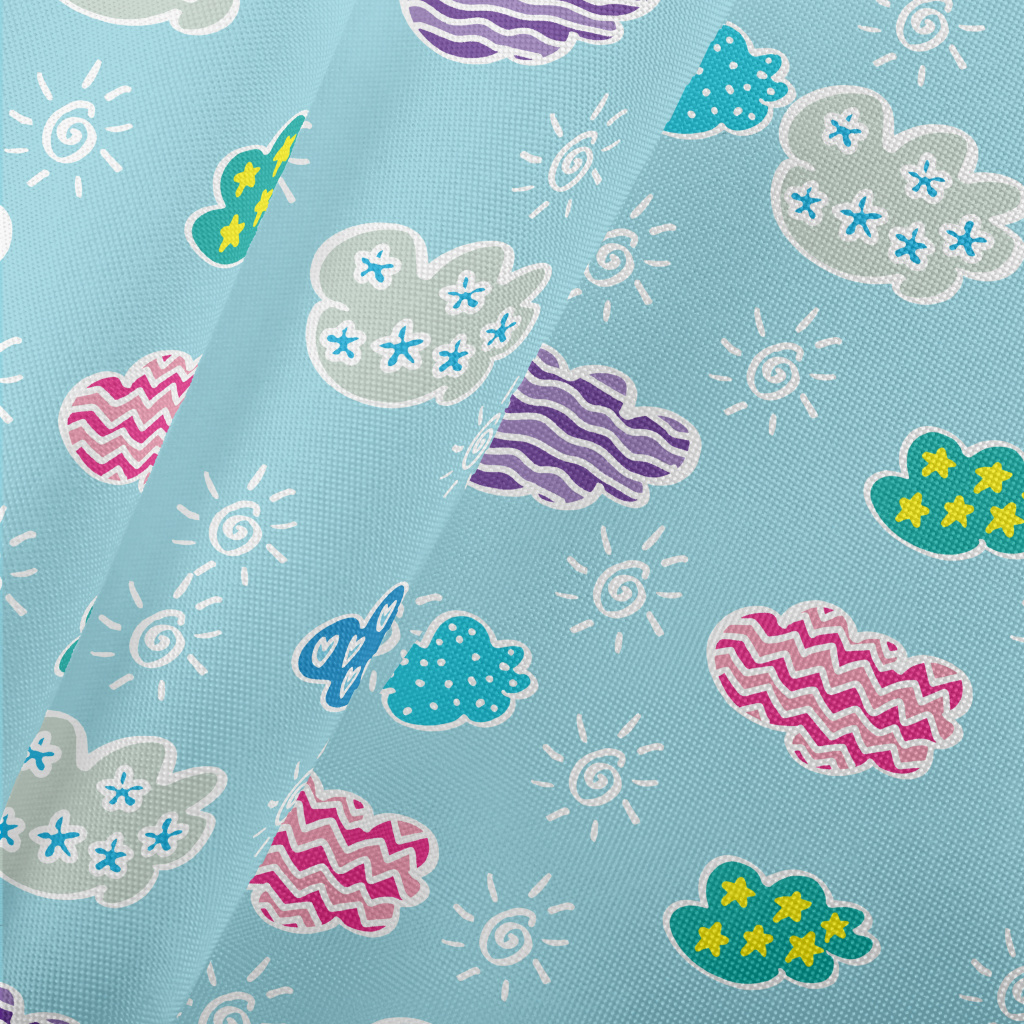 兒童塗鴉彩色雲朵春亞紡(幅寬160公分)