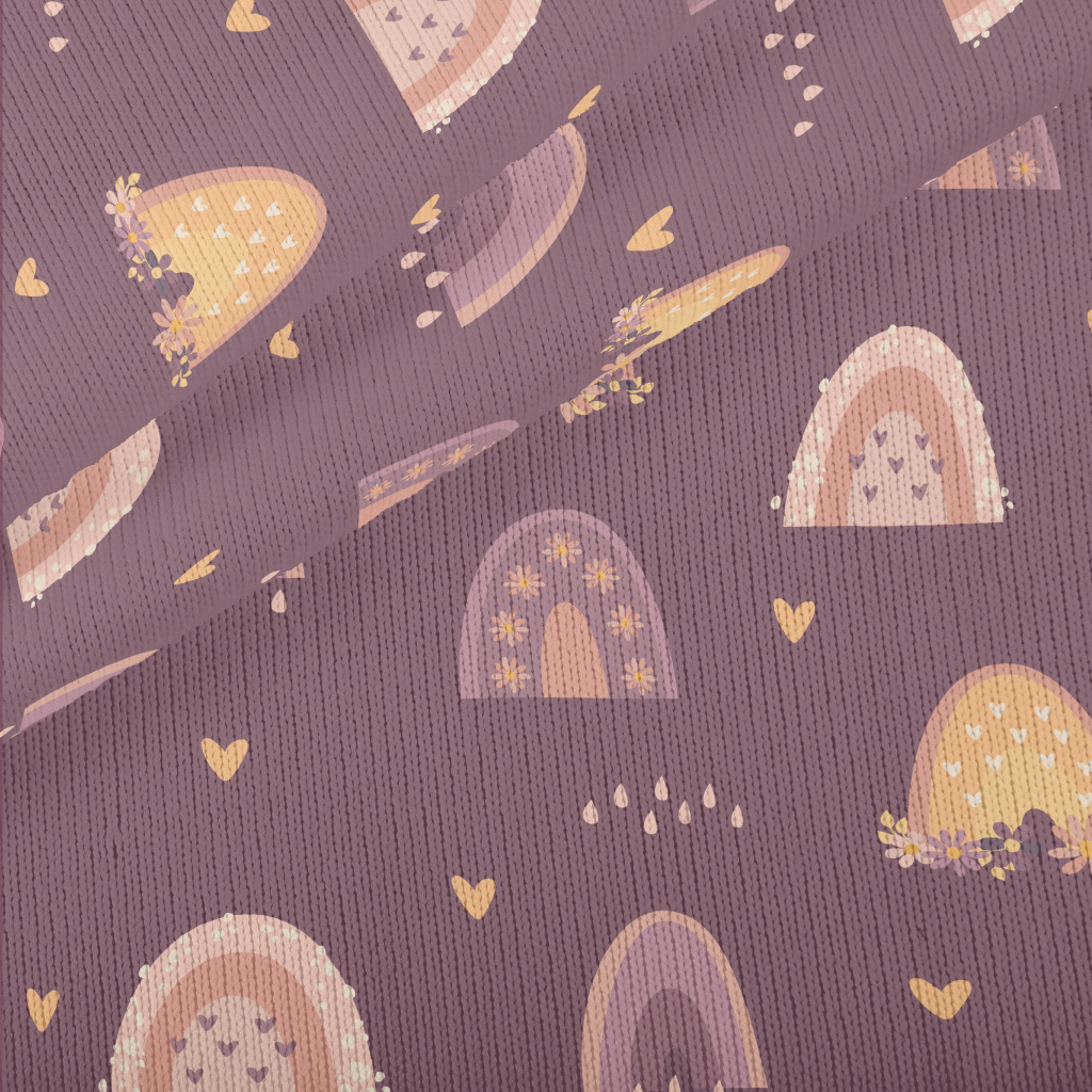 精美裝飾彩虹和愛心仿毛衣布(幅寬150公分)