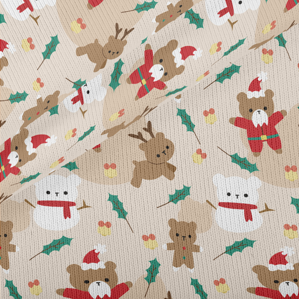 聖誕節裝扮的小熊仿毛衣布(幅寬150公分)