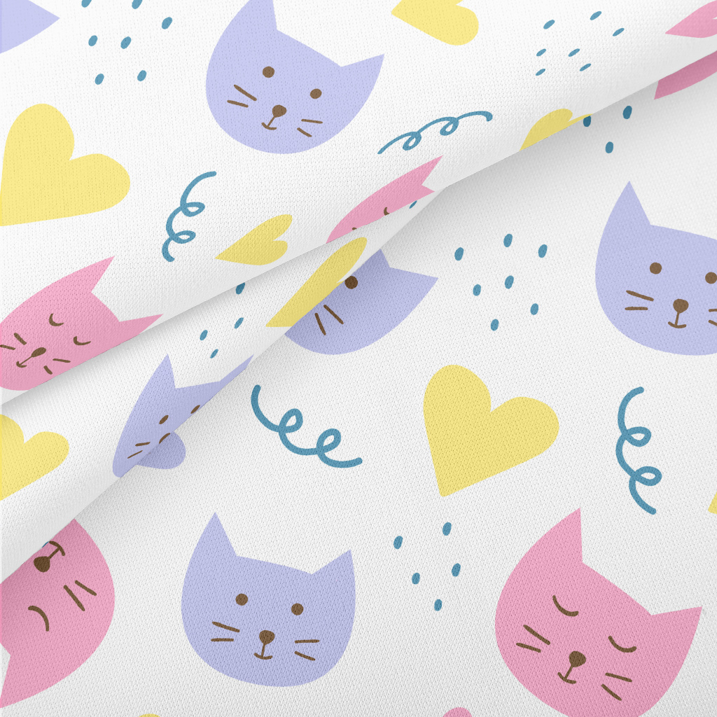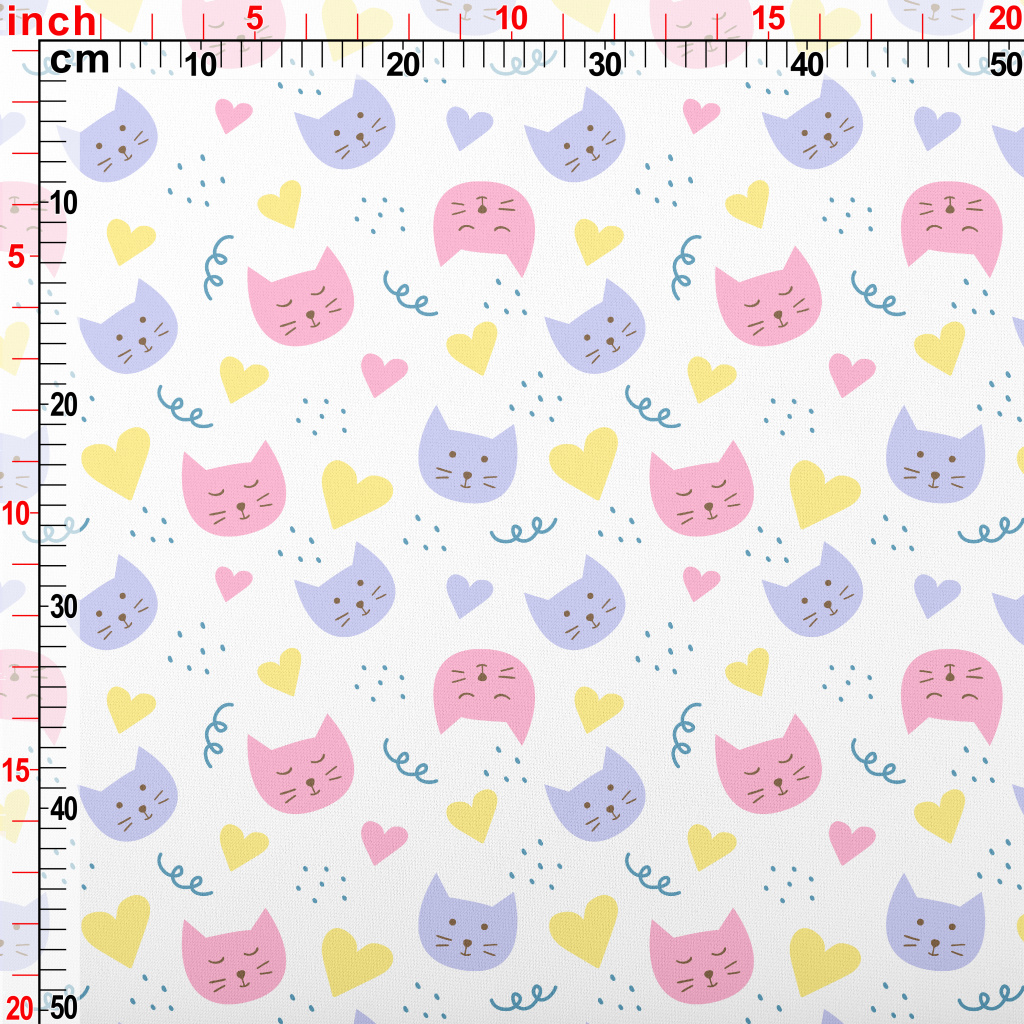 卡通彩色貓咪與愛心羅馬布(幅寬160公分)