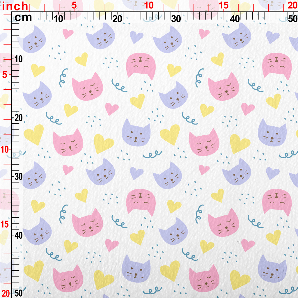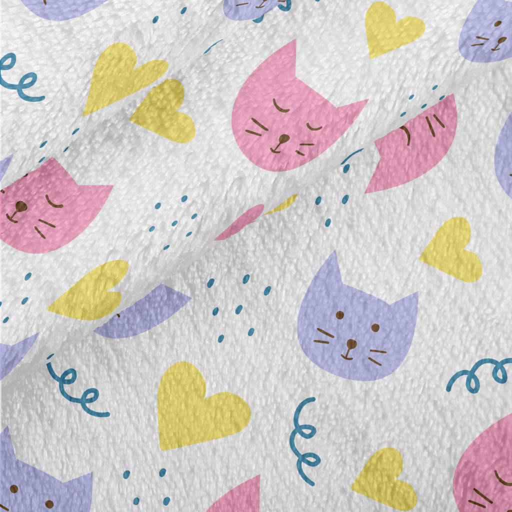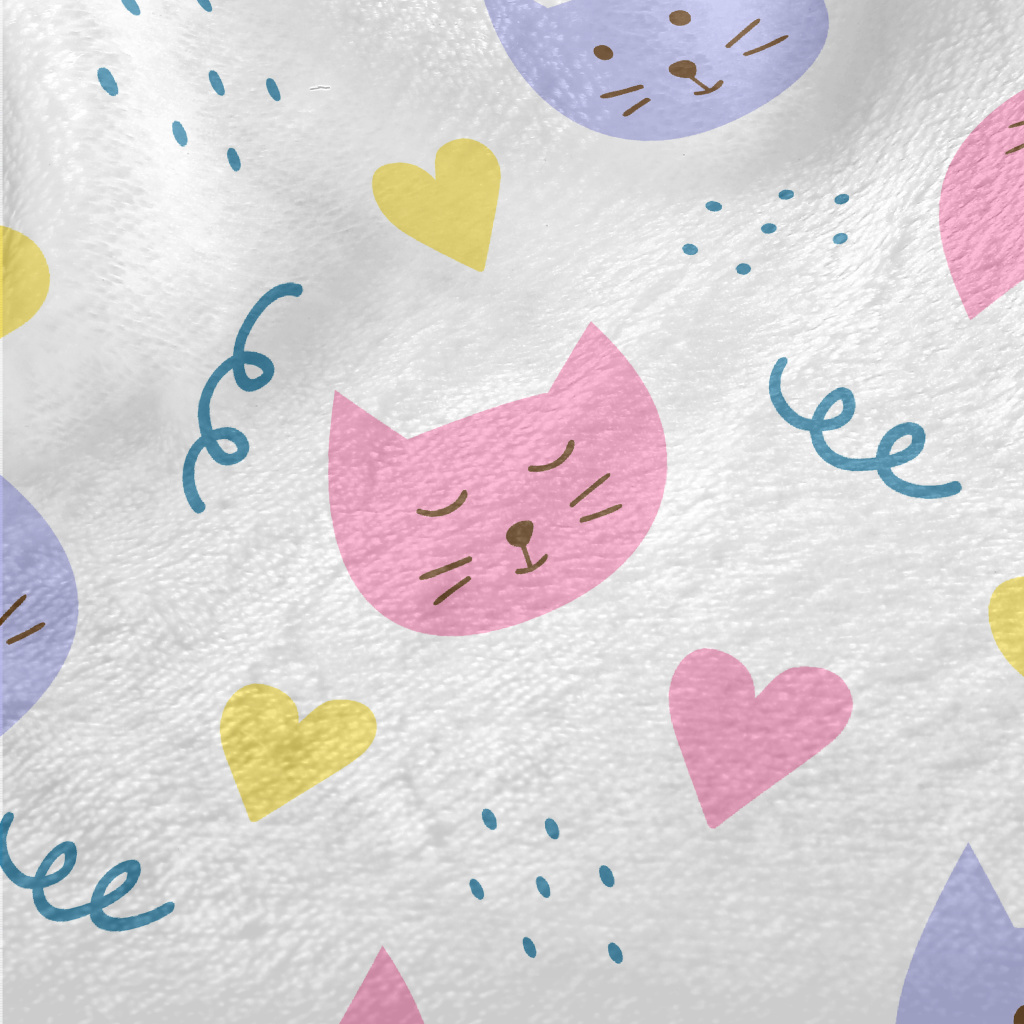 卡通彩色貓咪與愛心法蘭絨(幅寬150公分)
