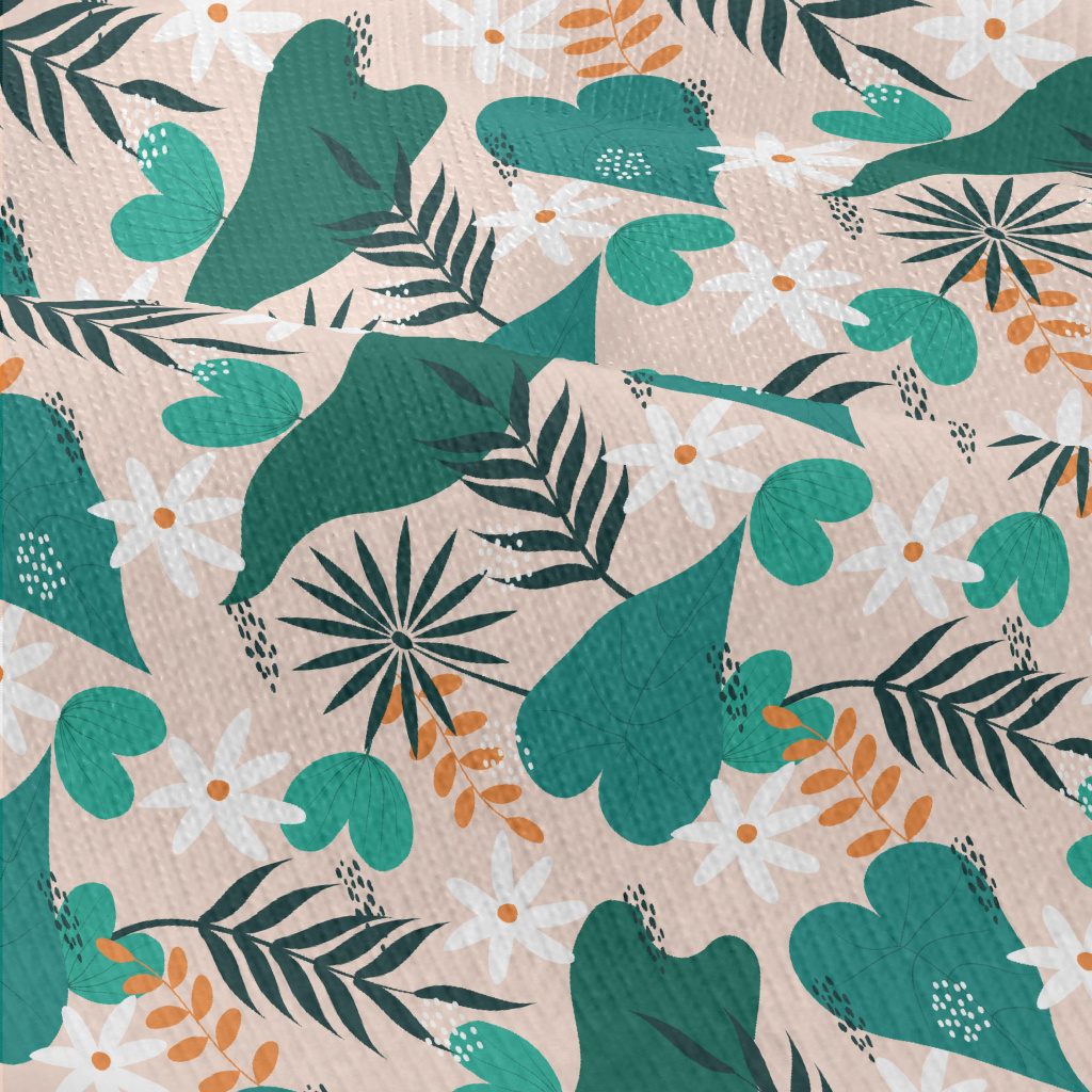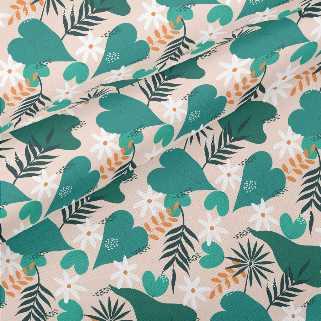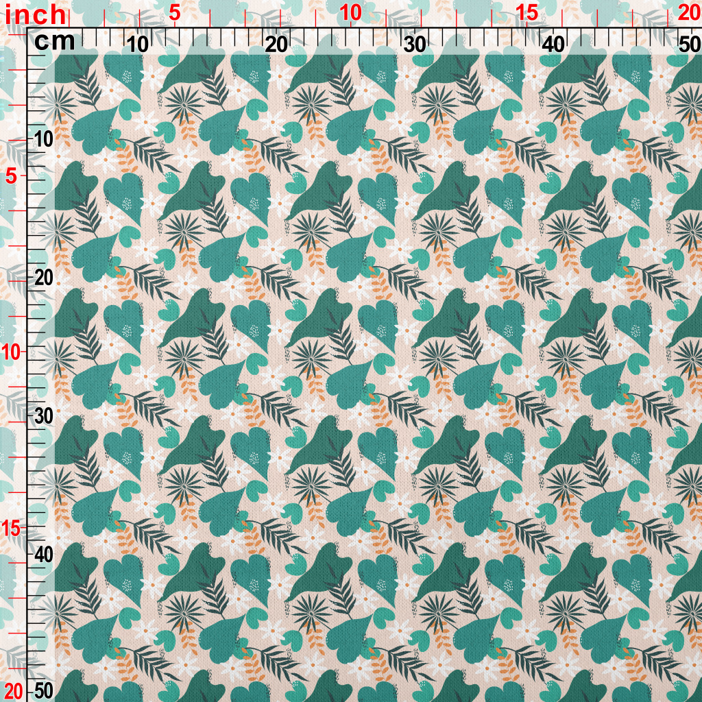 色塊綠葉與花朵仿棉布(幅寬150公分)