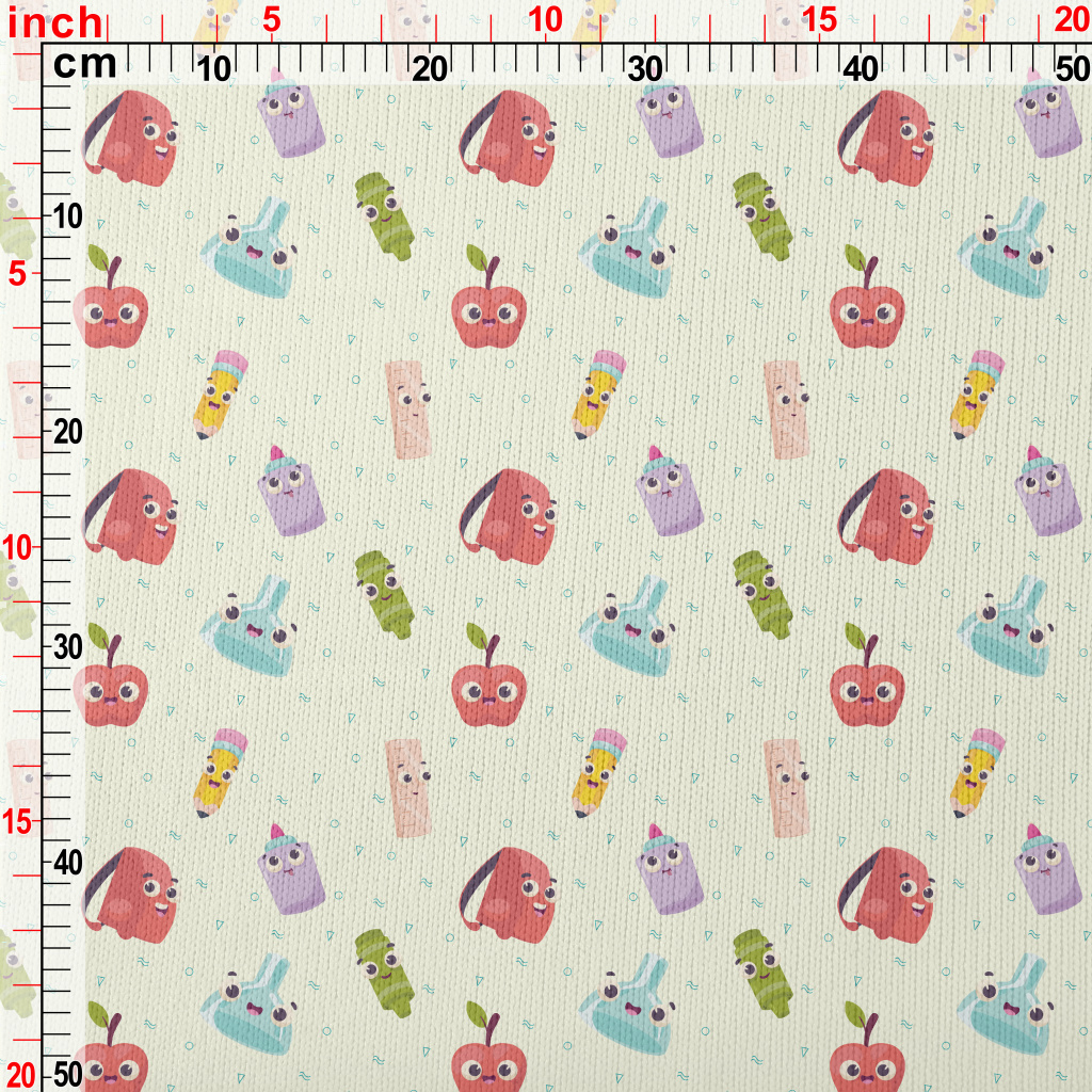 卡通可愛學校用品仿毛衣布(幅寬150公分)