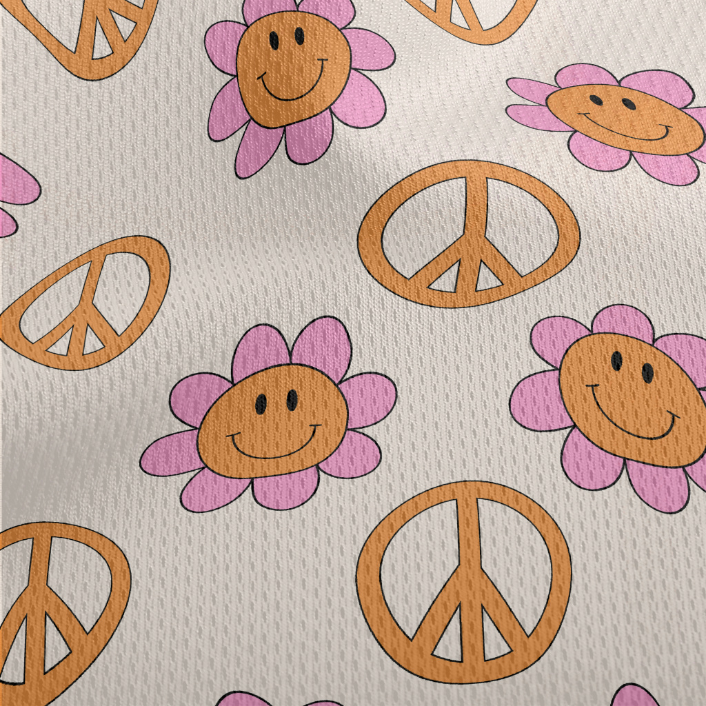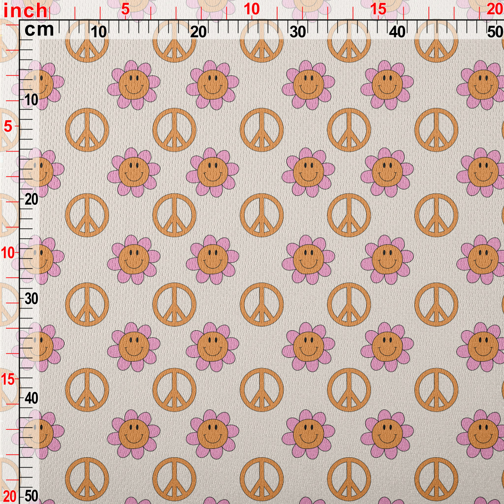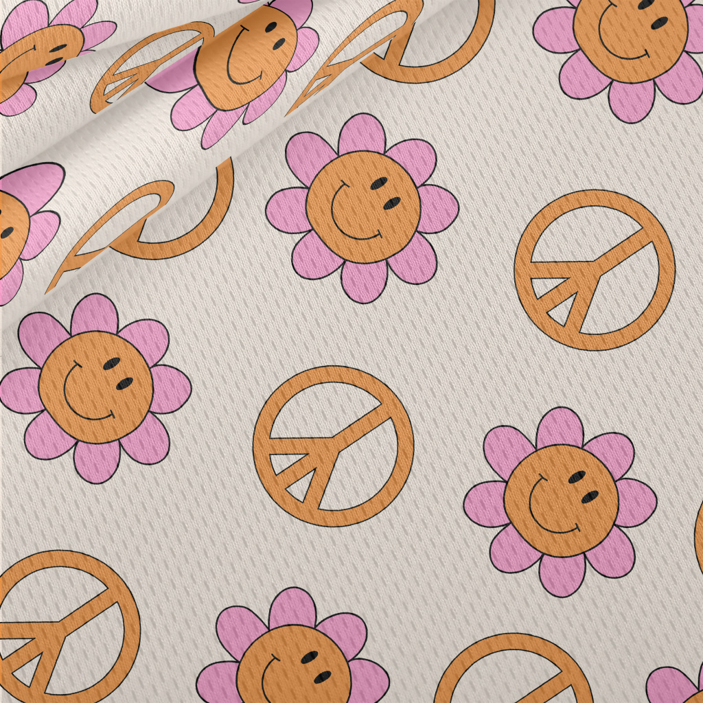 粉色花朵和和平符號鳥眼布(幅寬160公分)