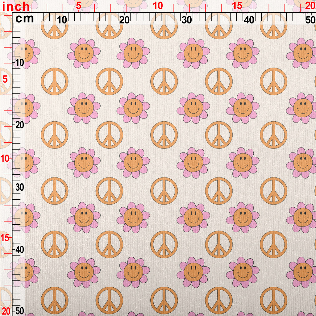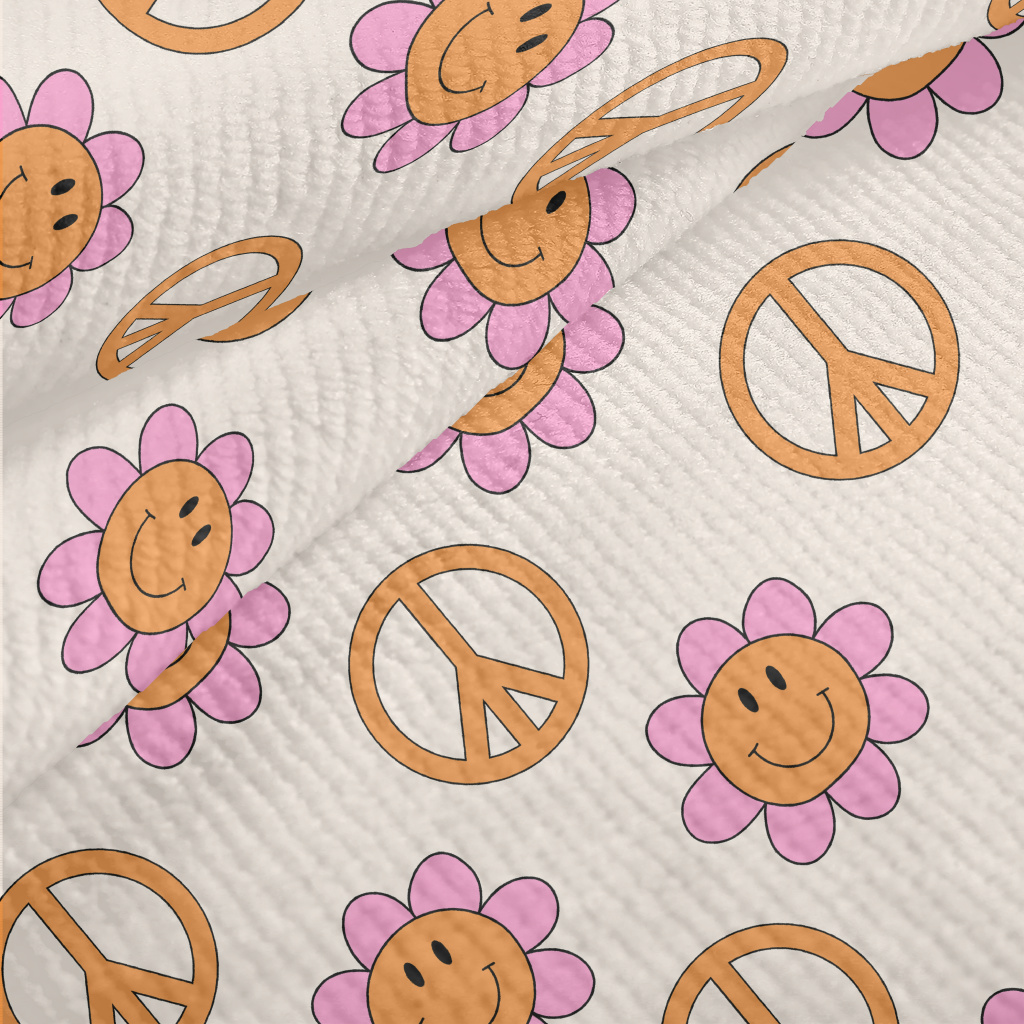 粉色花朵和和平符號毛巾布(幅寬160公分)