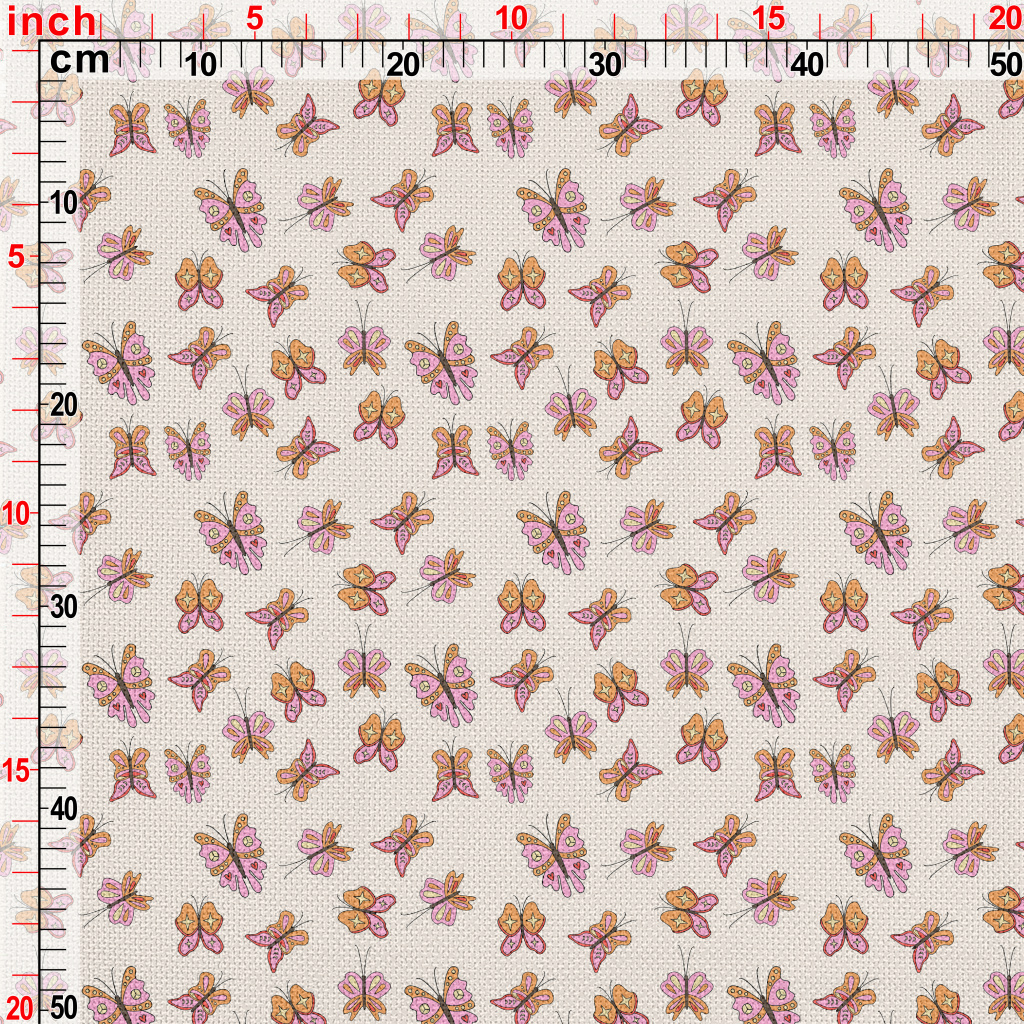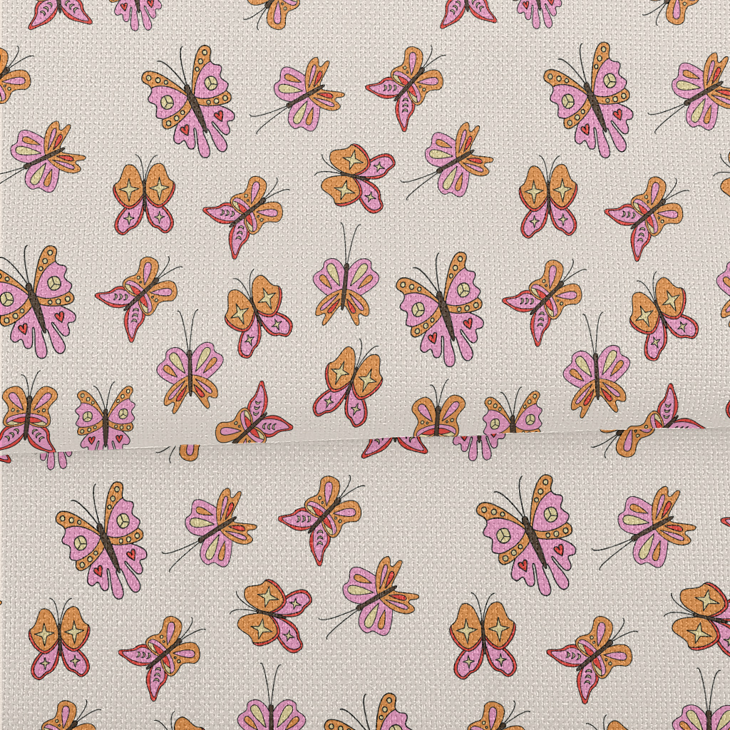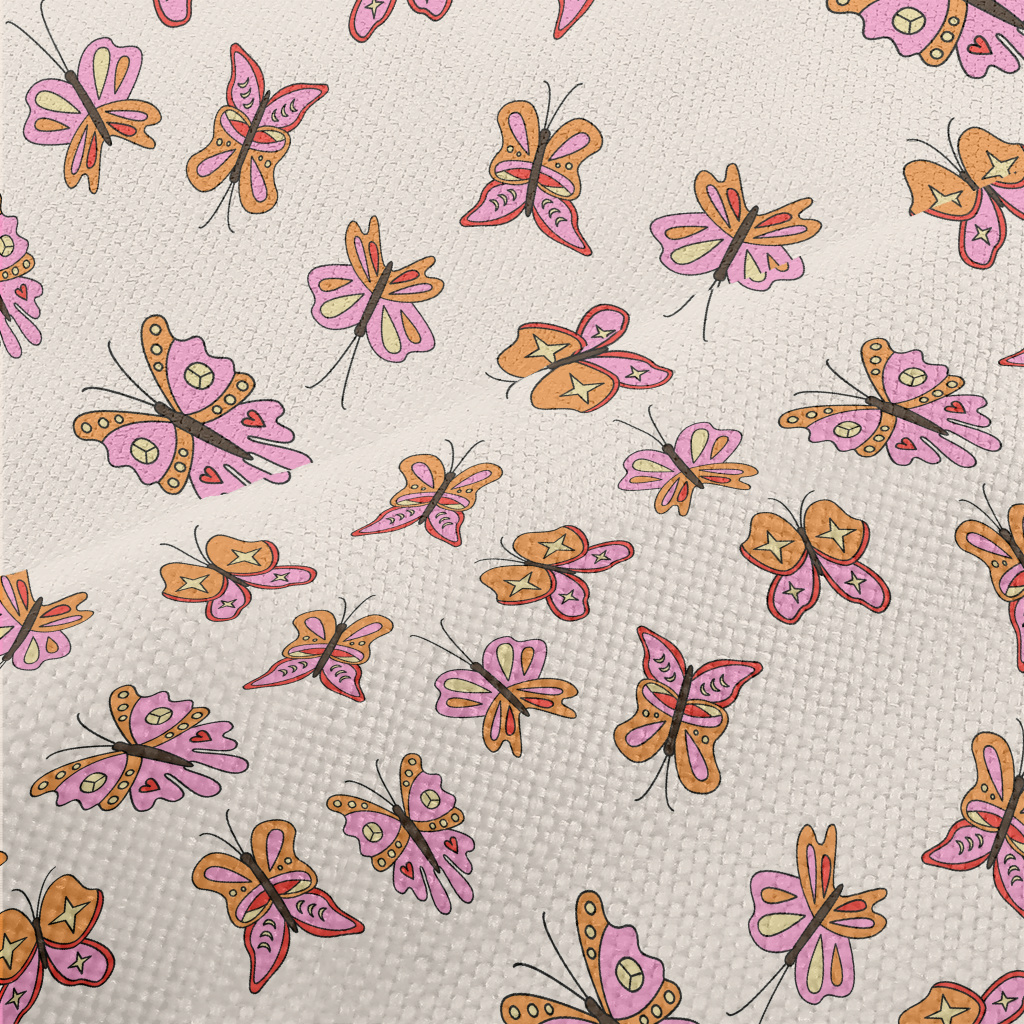 彩色復古風格蝴蝶麻布(幅寬150公分)