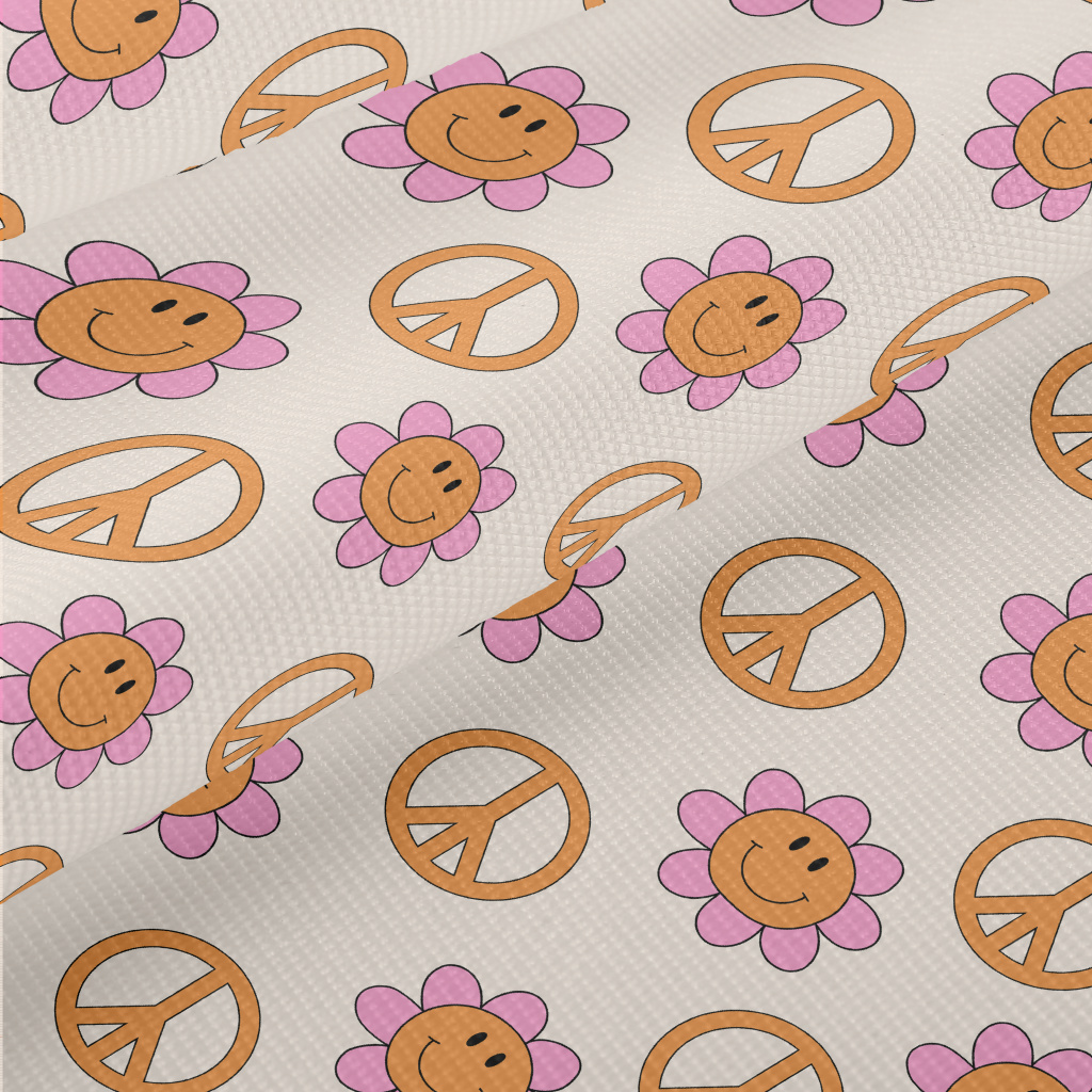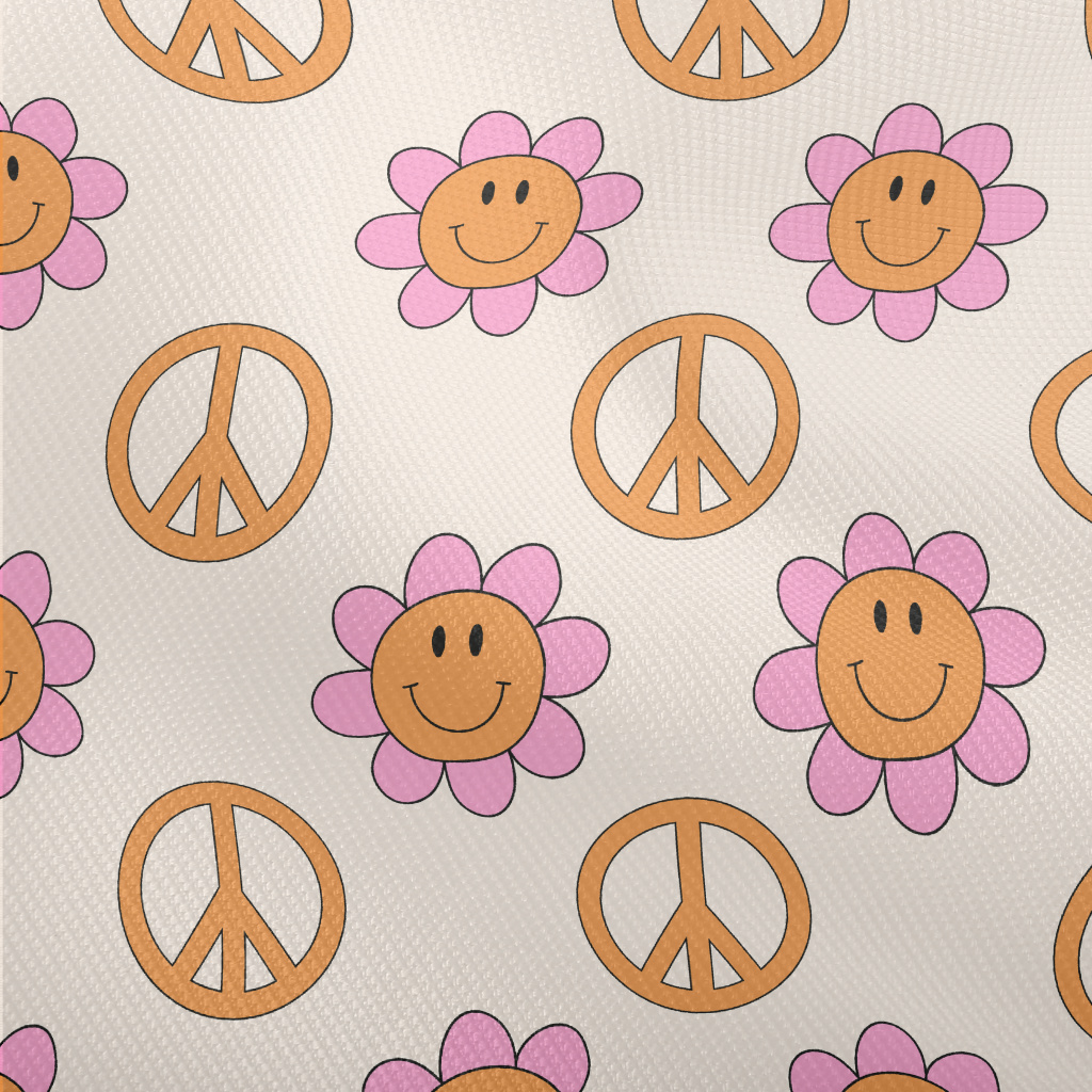 粉色花朵和和平符號雙斜布(幅寬150公分)