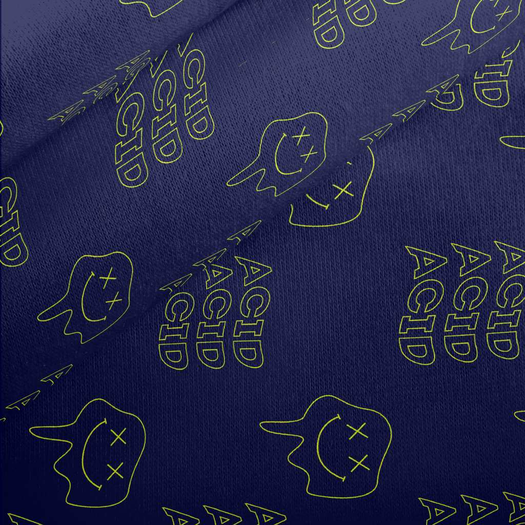 酸性英文與打叉表情符號刷毛布(幅寬150公分)