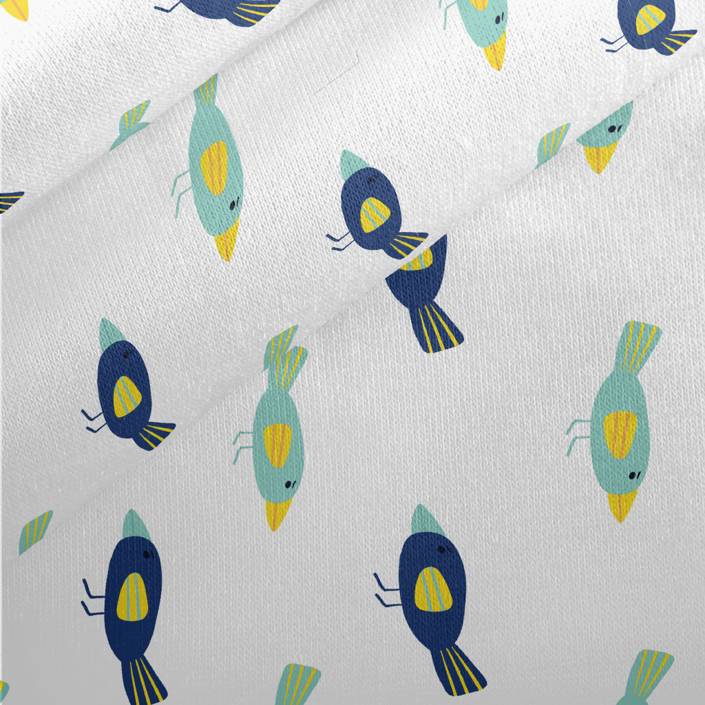 藍色生氣的小鳥刷毛布(幅寬150公分)