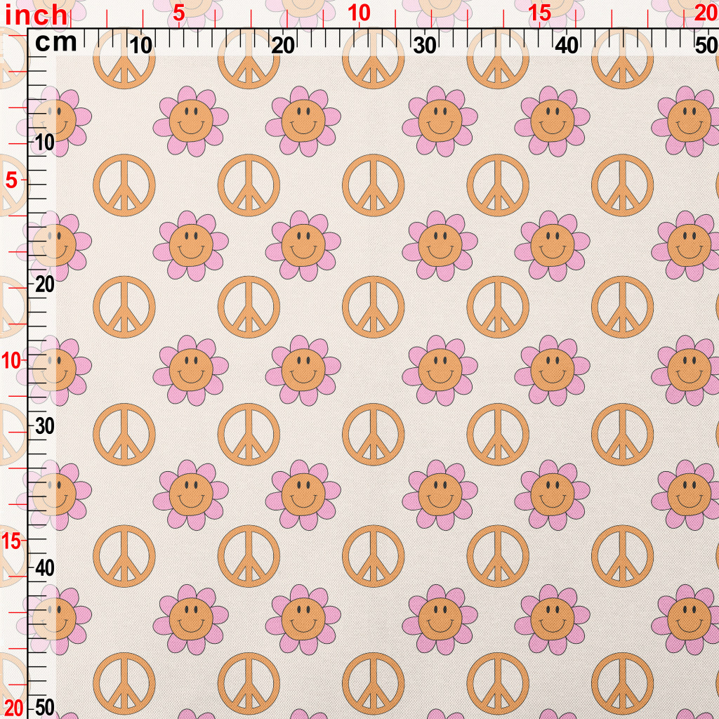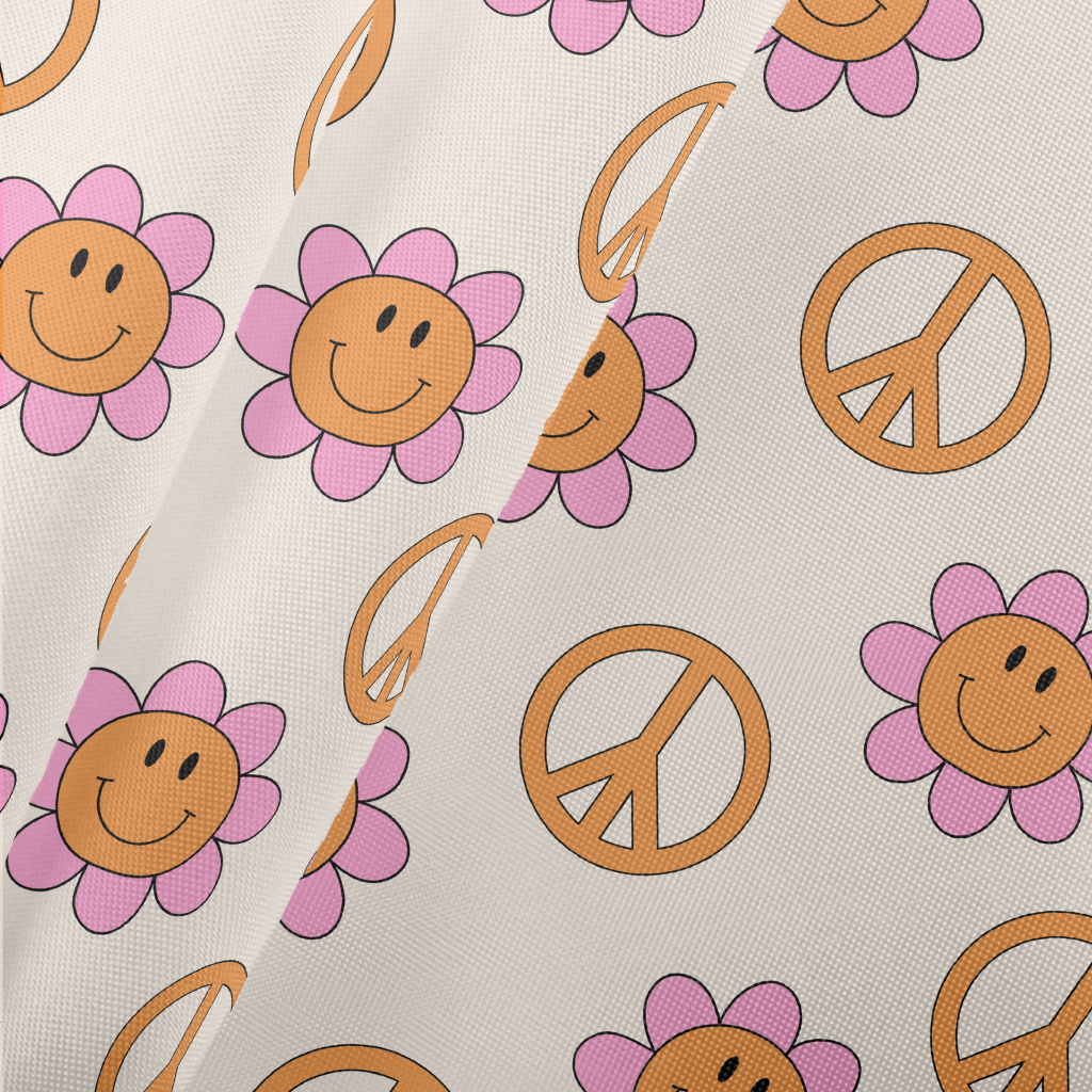 粉色花朵和和平符號春亞紡(幅寬160公分)