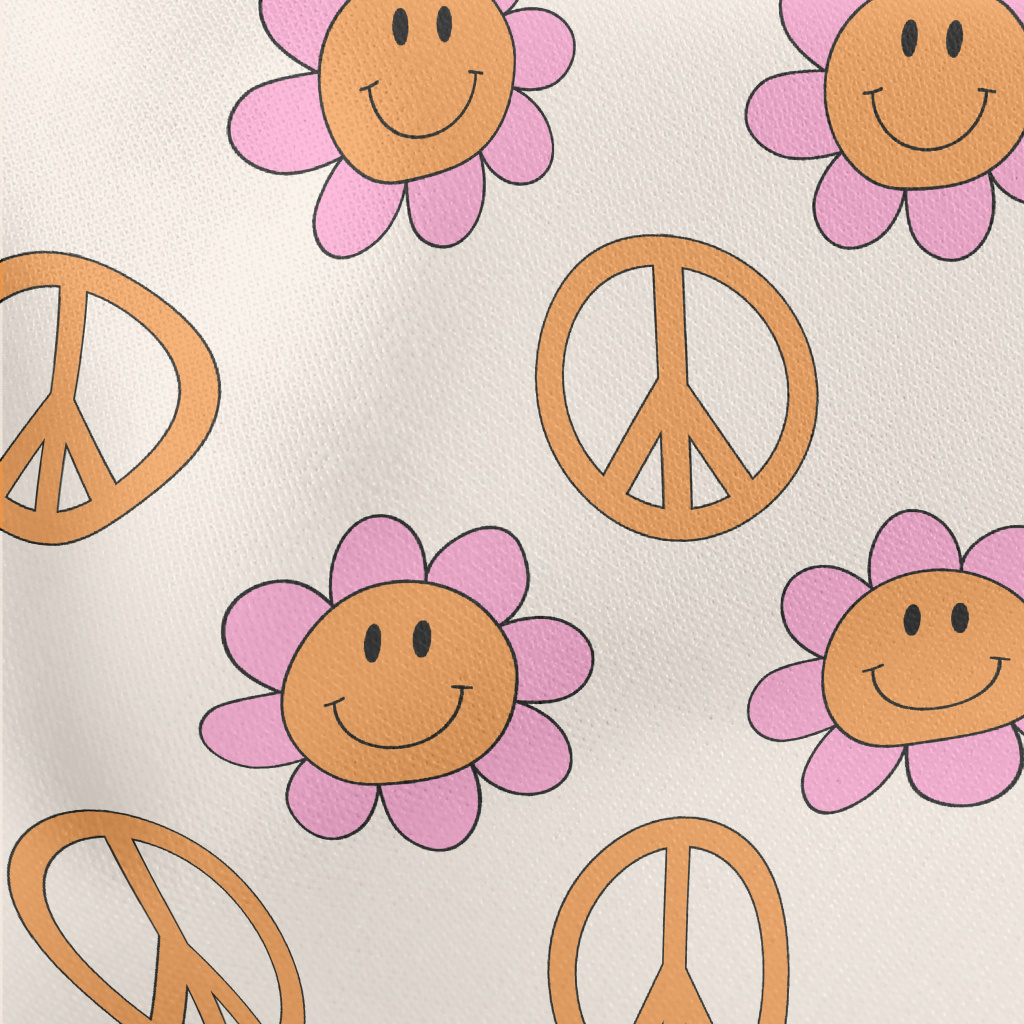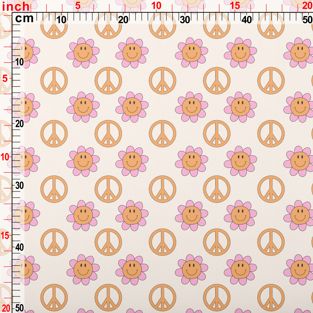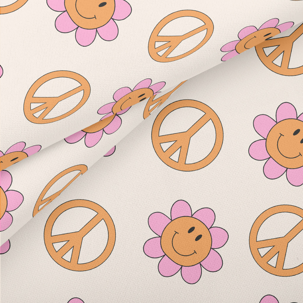 粉色花朵和和平符號薄棉布(幅寬150公分)