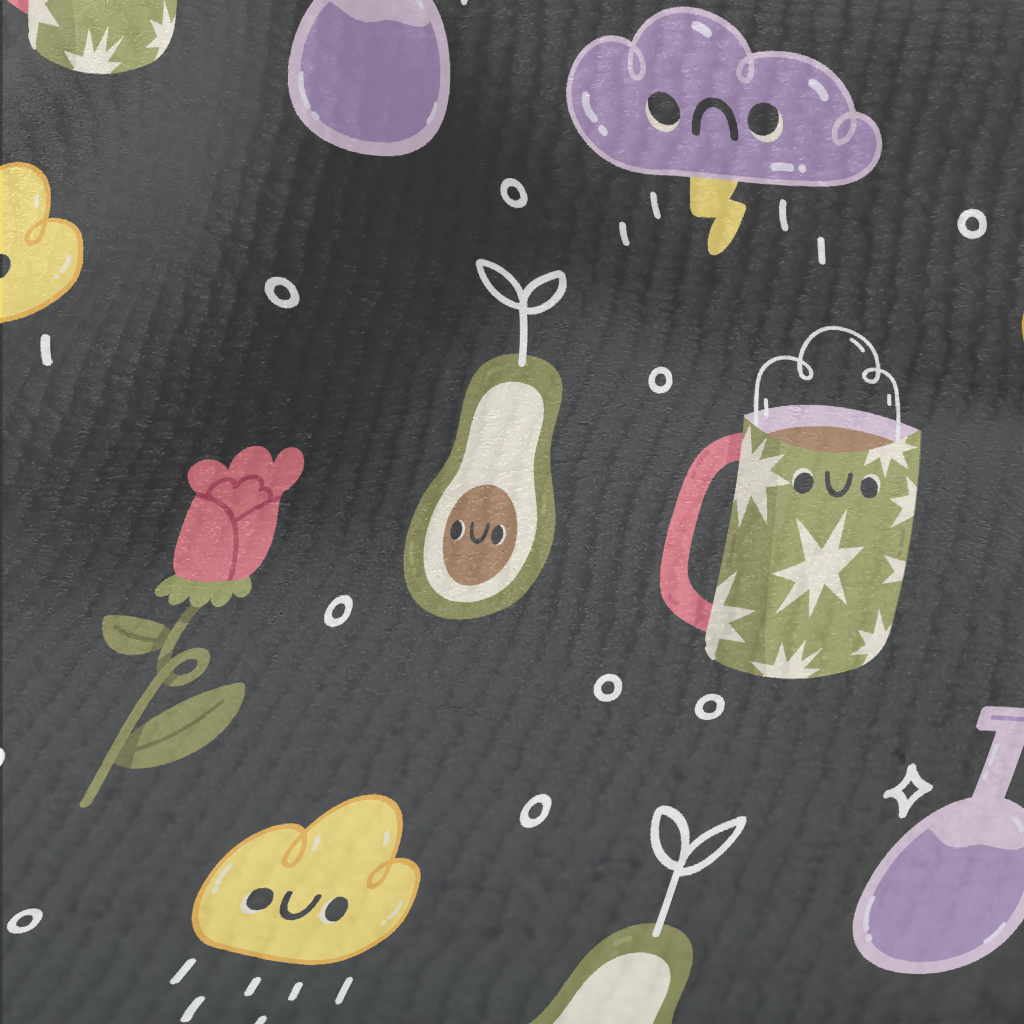 可愛表情杯子雲朵酪梨毛巾布(幅寬160公分)