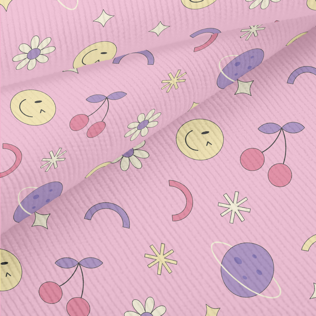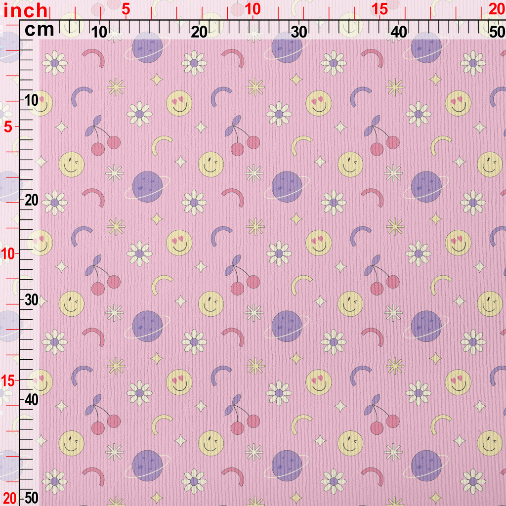 表情符號花朵星球圖案燈芯絨(幅寬150公分)