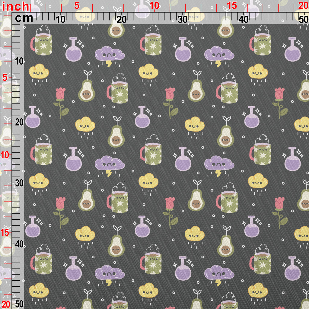可愛表情杯子雲朵酪梨雙斜布(幅寬150公分)
