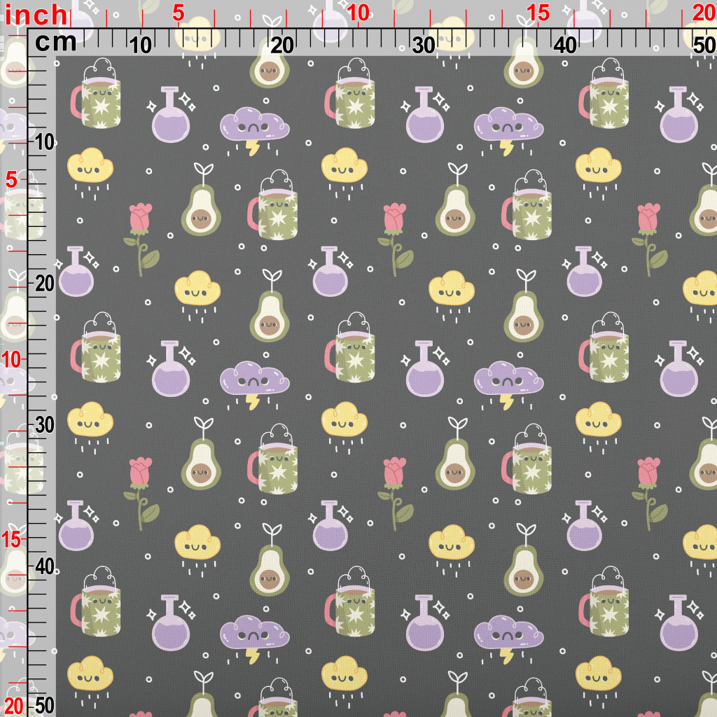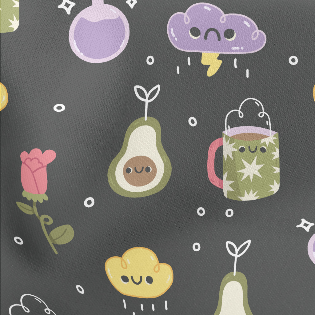 可愛表情杯子雲朵酪梨羅馬布(幅寬160公分)