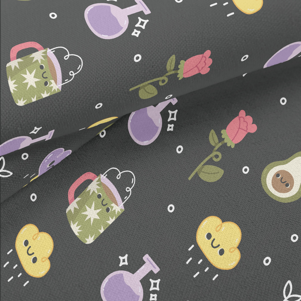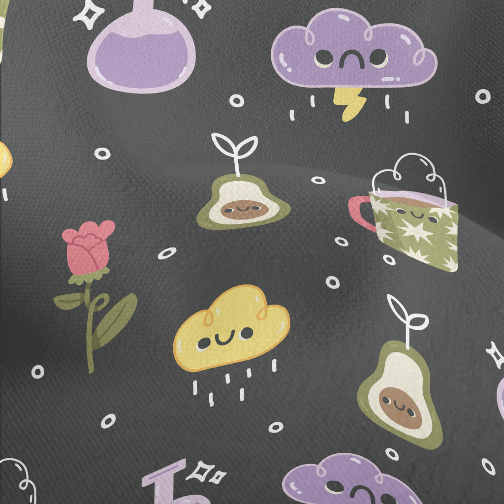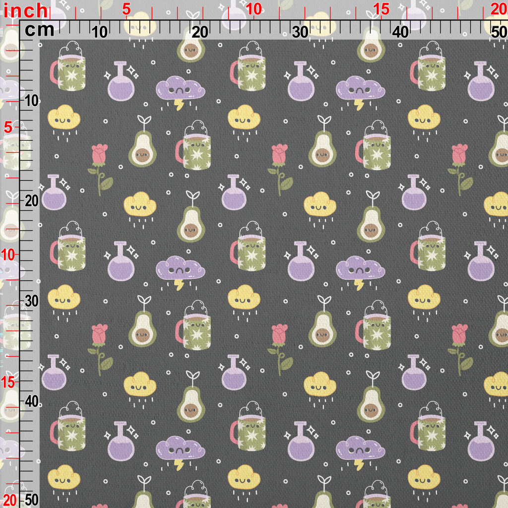 可愛表情杯子雲朵酪梨竹節麻(幅寬150公分)