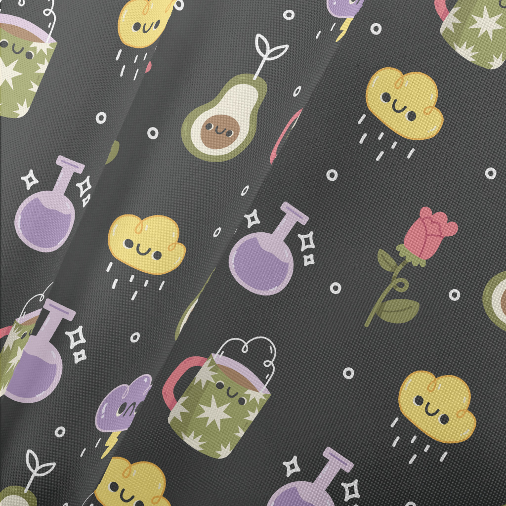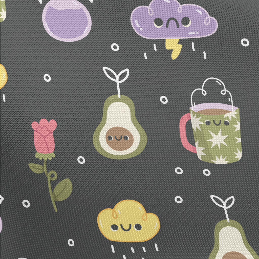 可愛表情杯子雲朵酪梨春亞紡(幅寬160公分)